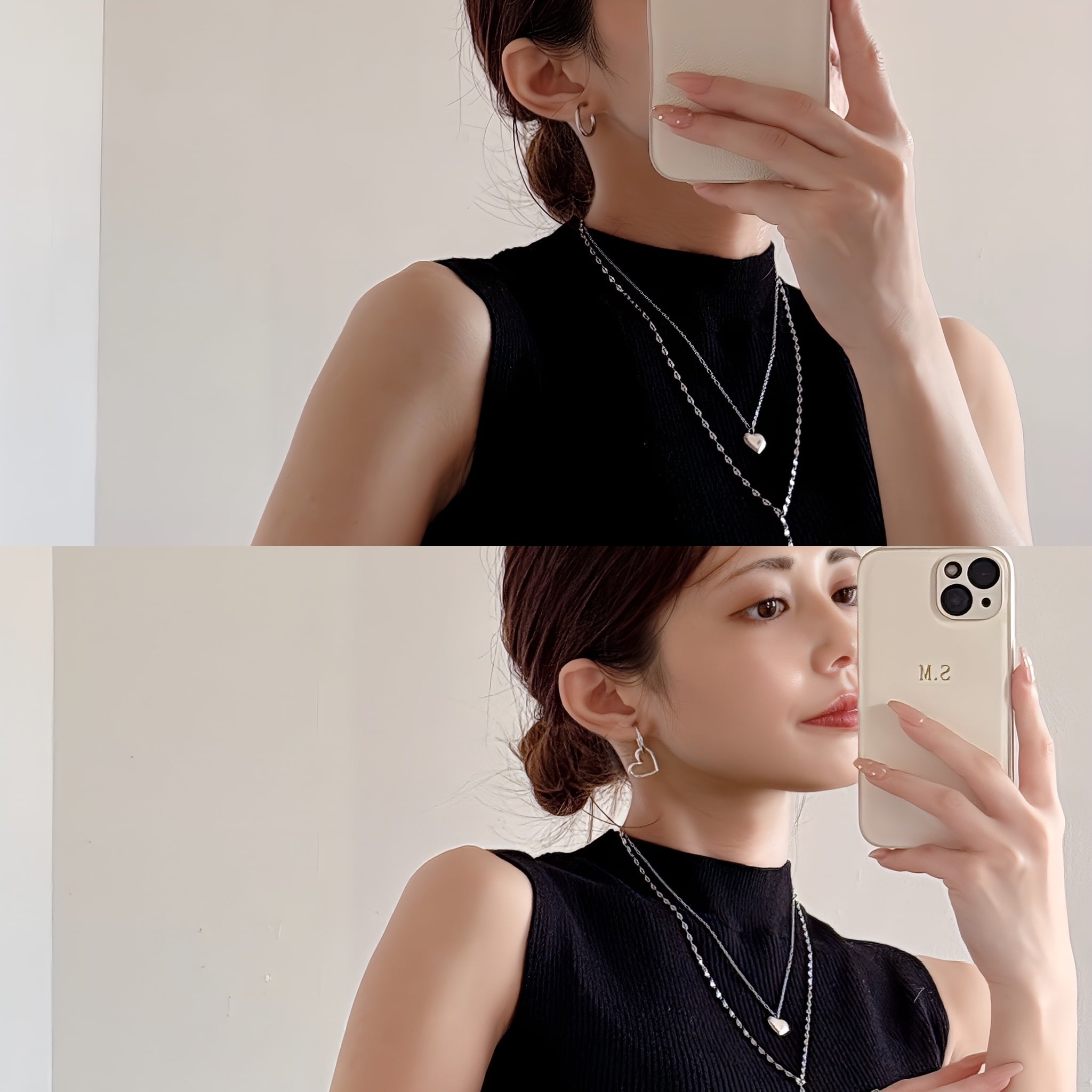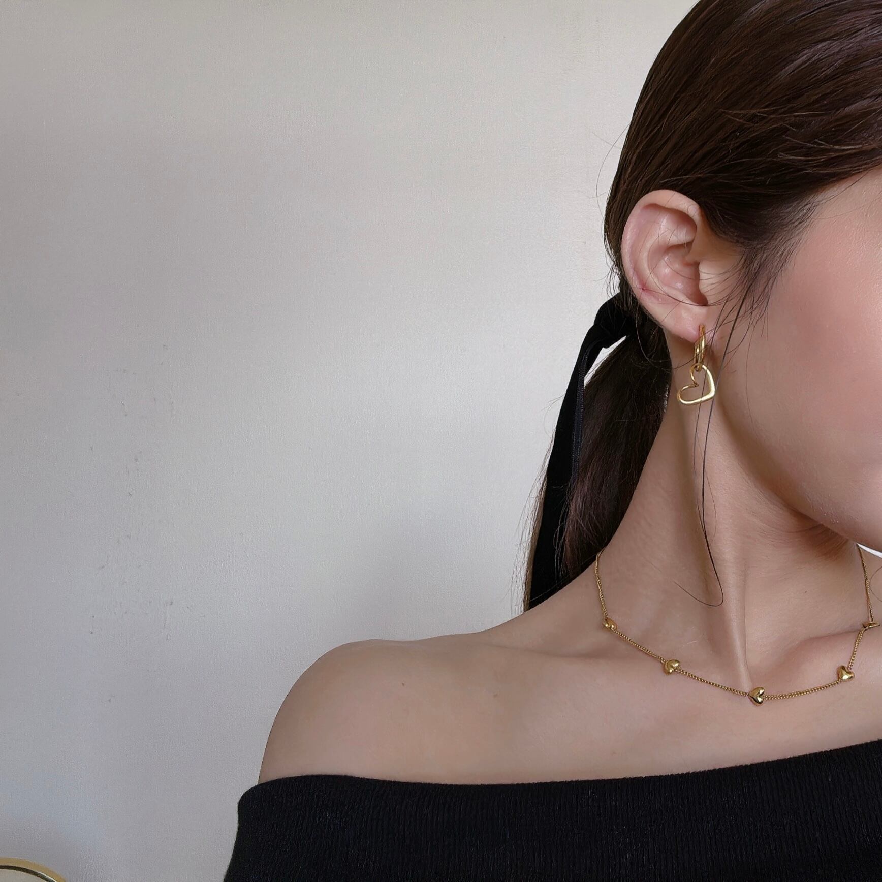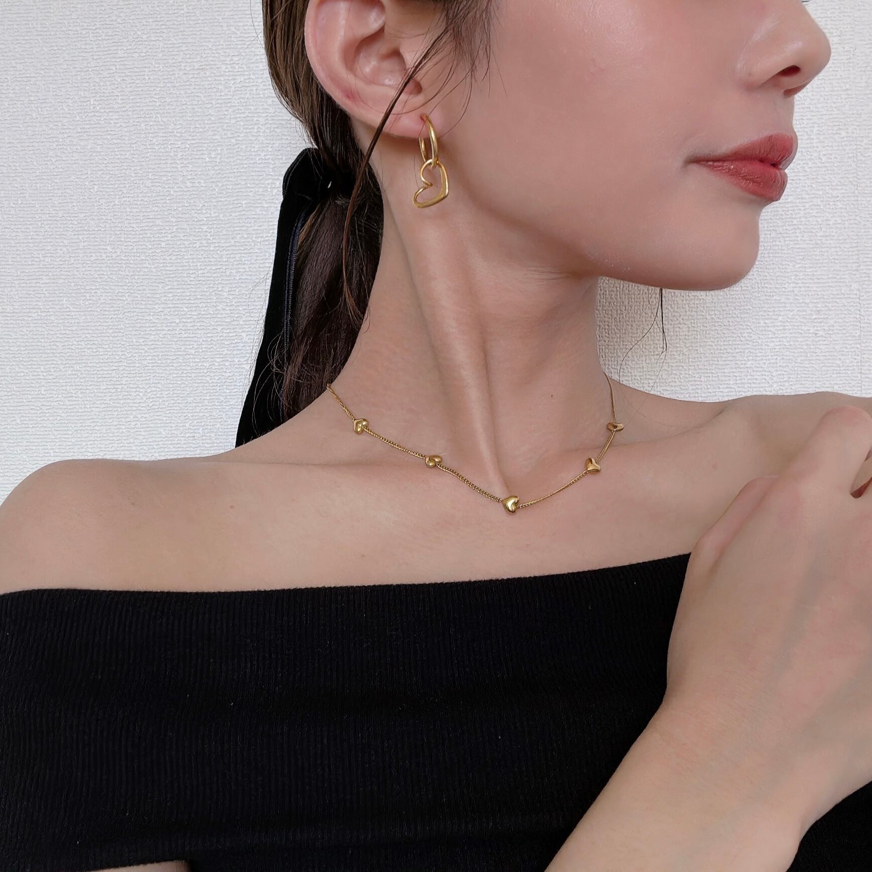 2wayハートピアス|シンプルアクセ×日常使いアクセ【金属アレルギー対応】