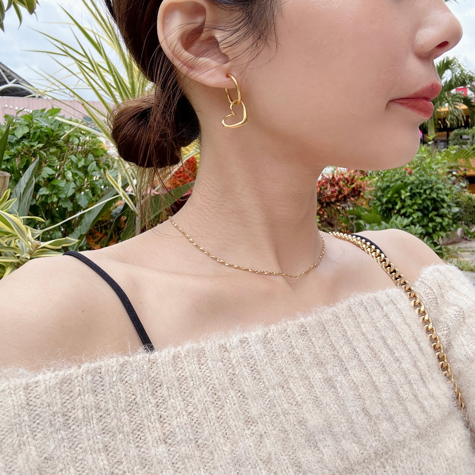 2wayで楽しめるハートピアス♡くりぬきのニュアンスハートが大人なアイテム!ハートを外してフープピアス だけでも楽しめる万能ピアスです♩