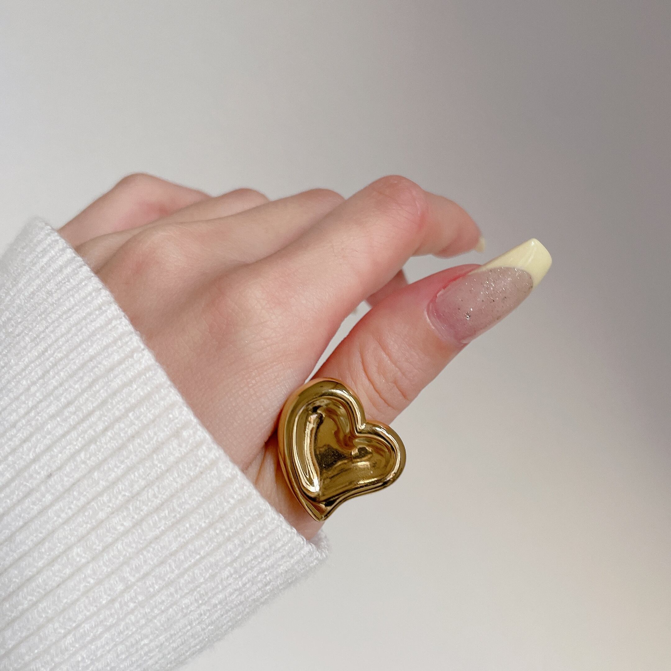 重みのあるずっしりハートリング♡大きめのフォルムがインパクト大!手元でガッツリアクセントになります。