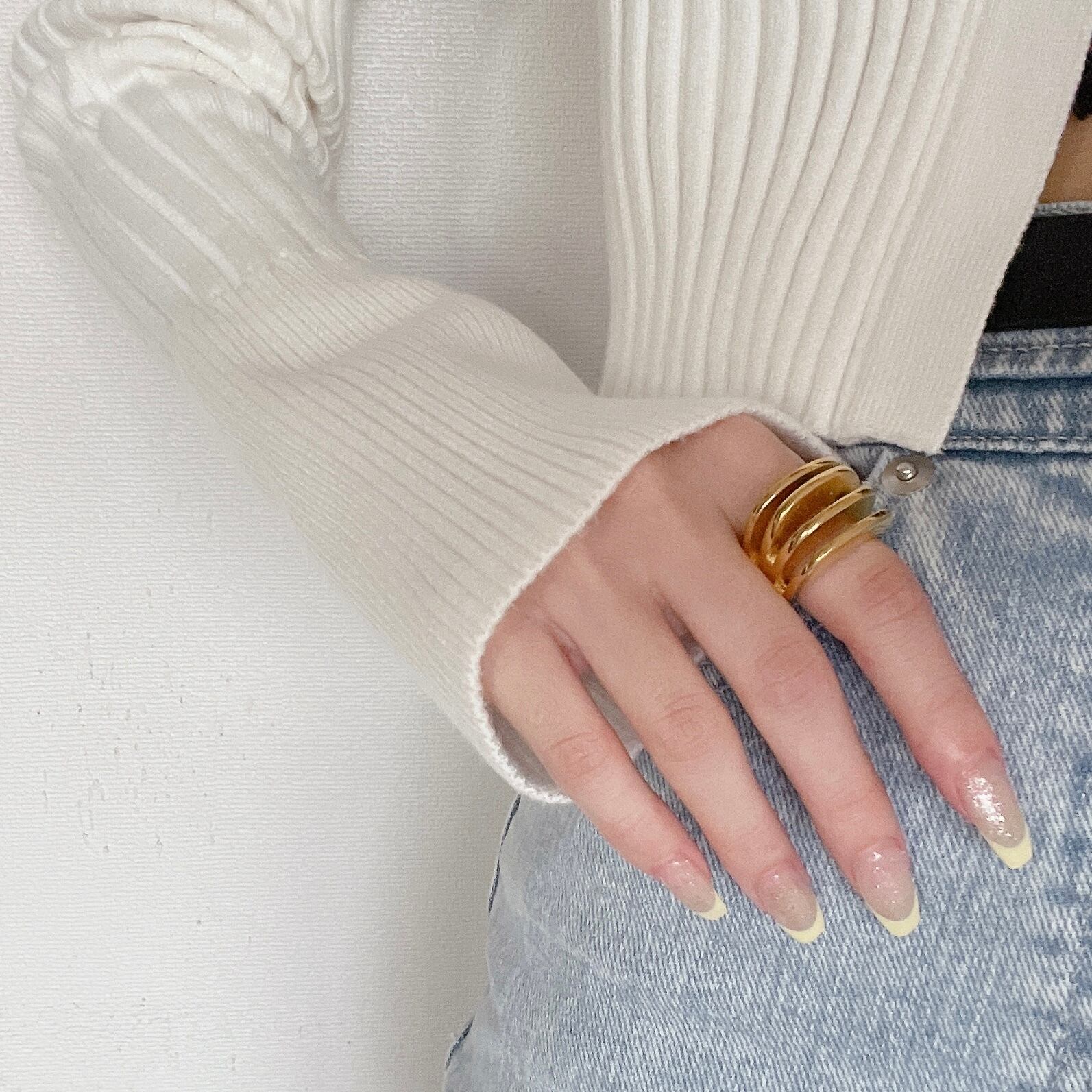 大振りなデザインリング♩太めのリングになるため、普段のサイズのワンサイズ上のサイズをオススメしてます!