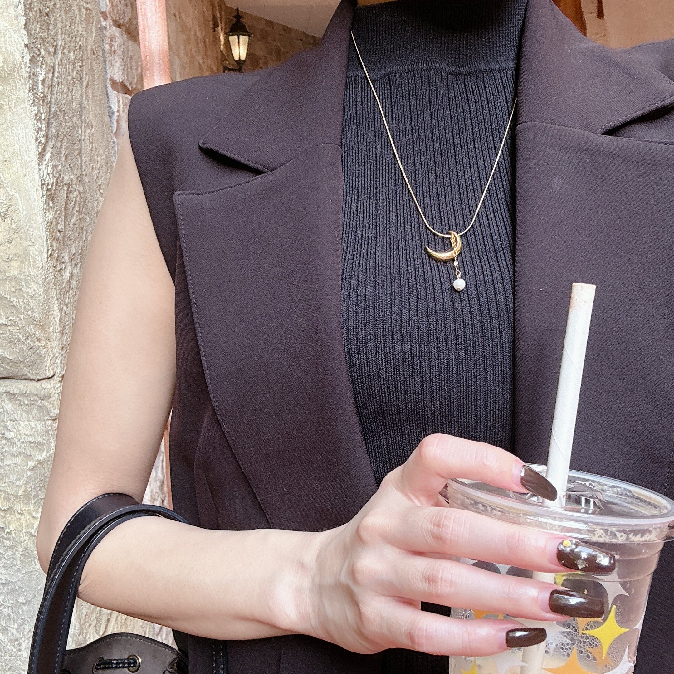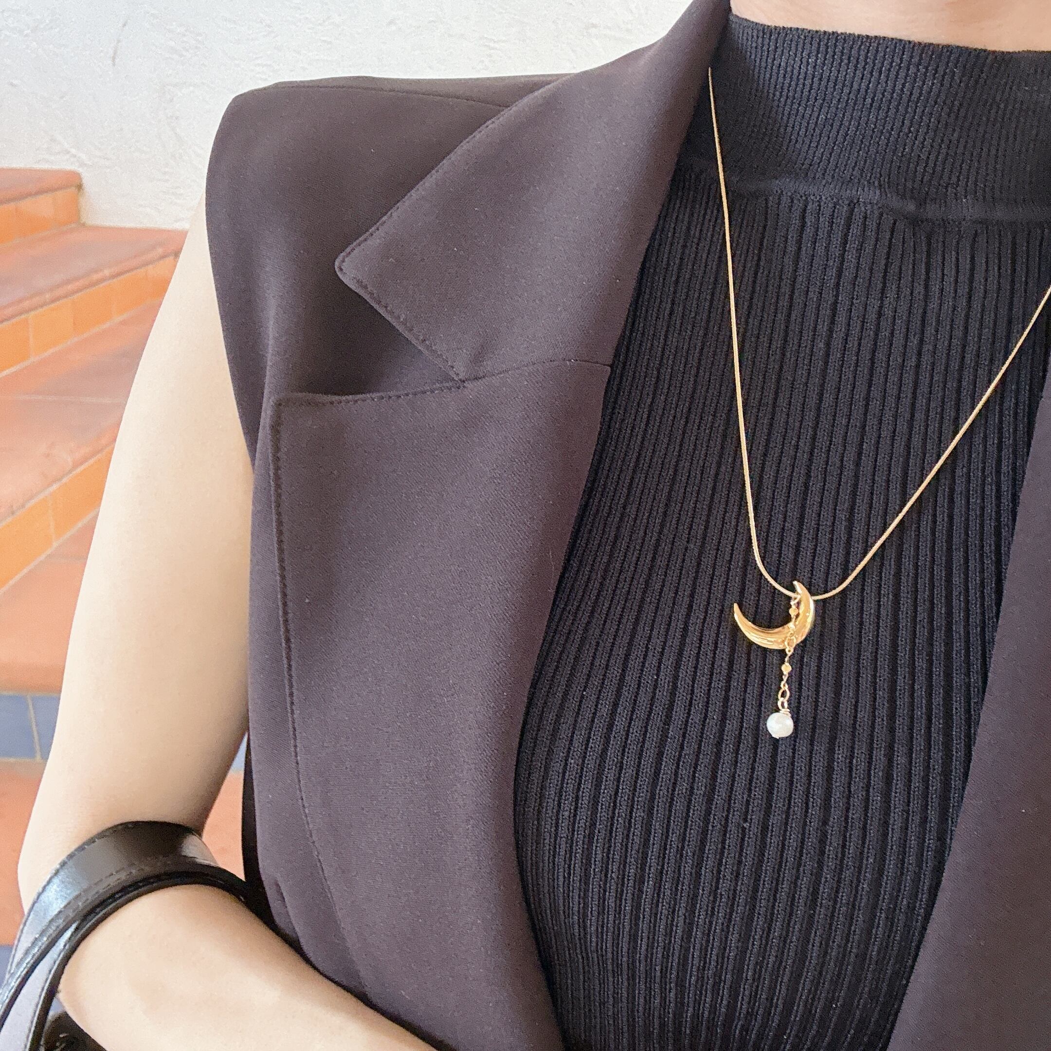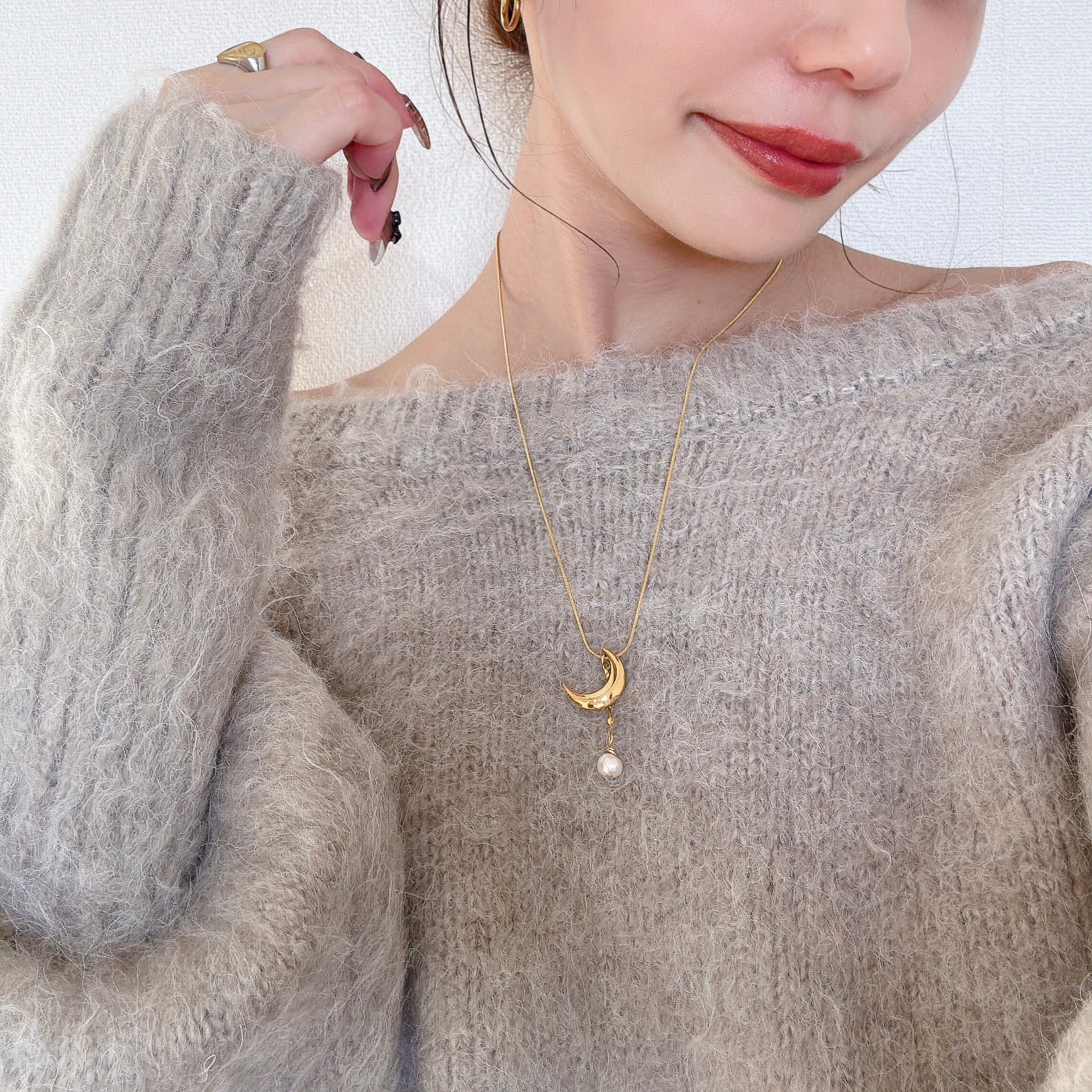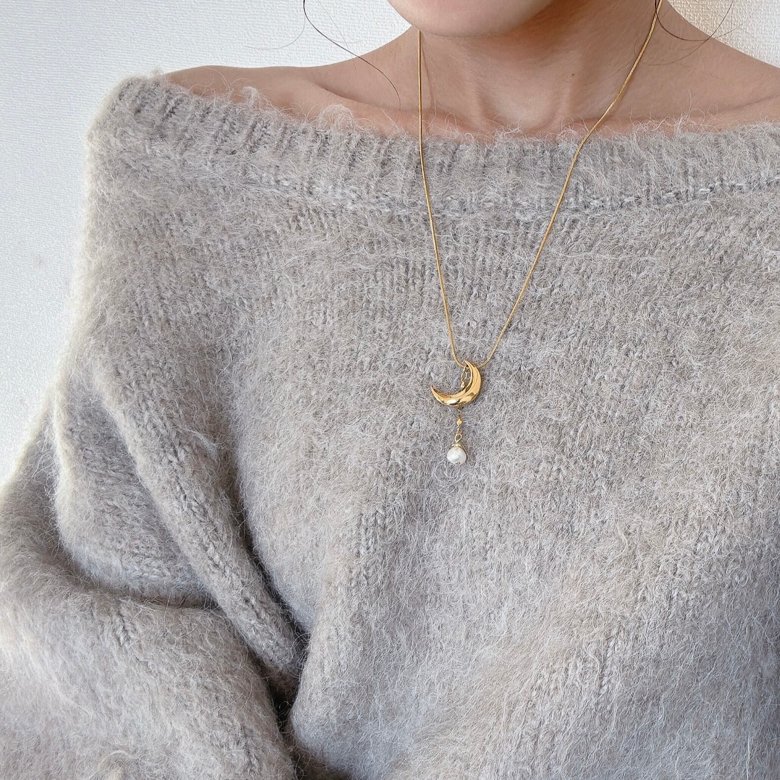 月ネックレス / moon / 存在感 / 大人カジュアル / 三日月 / 淡水パールネックレス / 凛としたネックレス