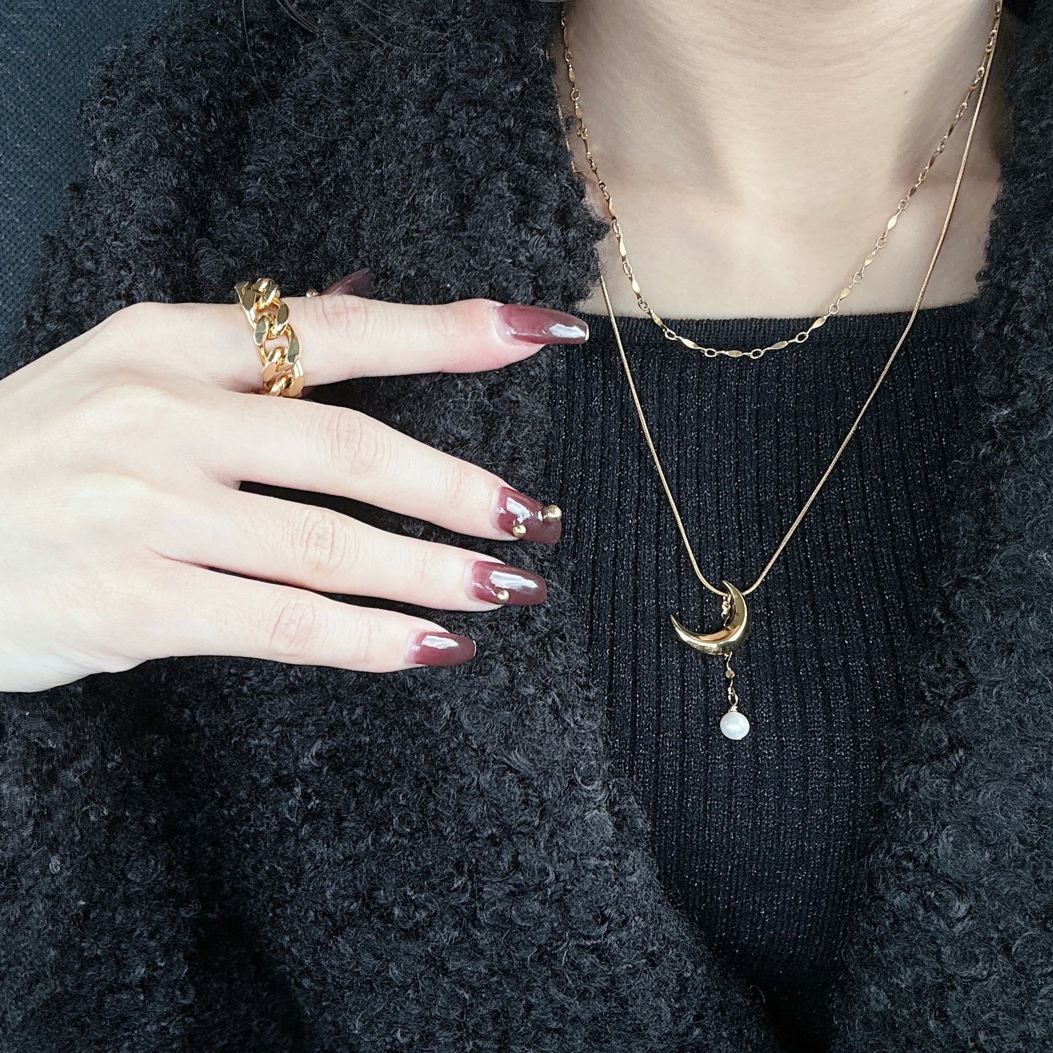 揺れる月チャームがさりげなく視線を惹きつけます。