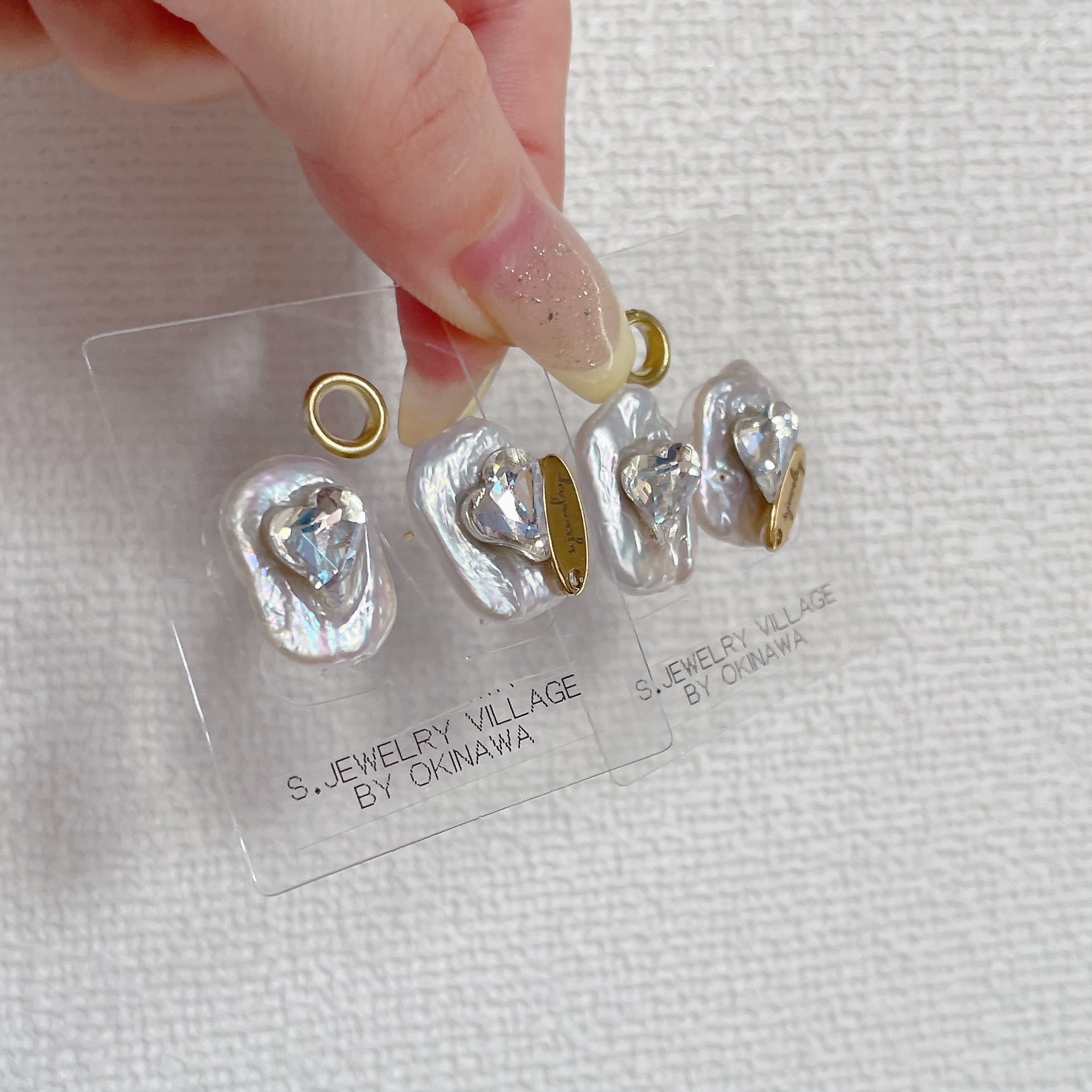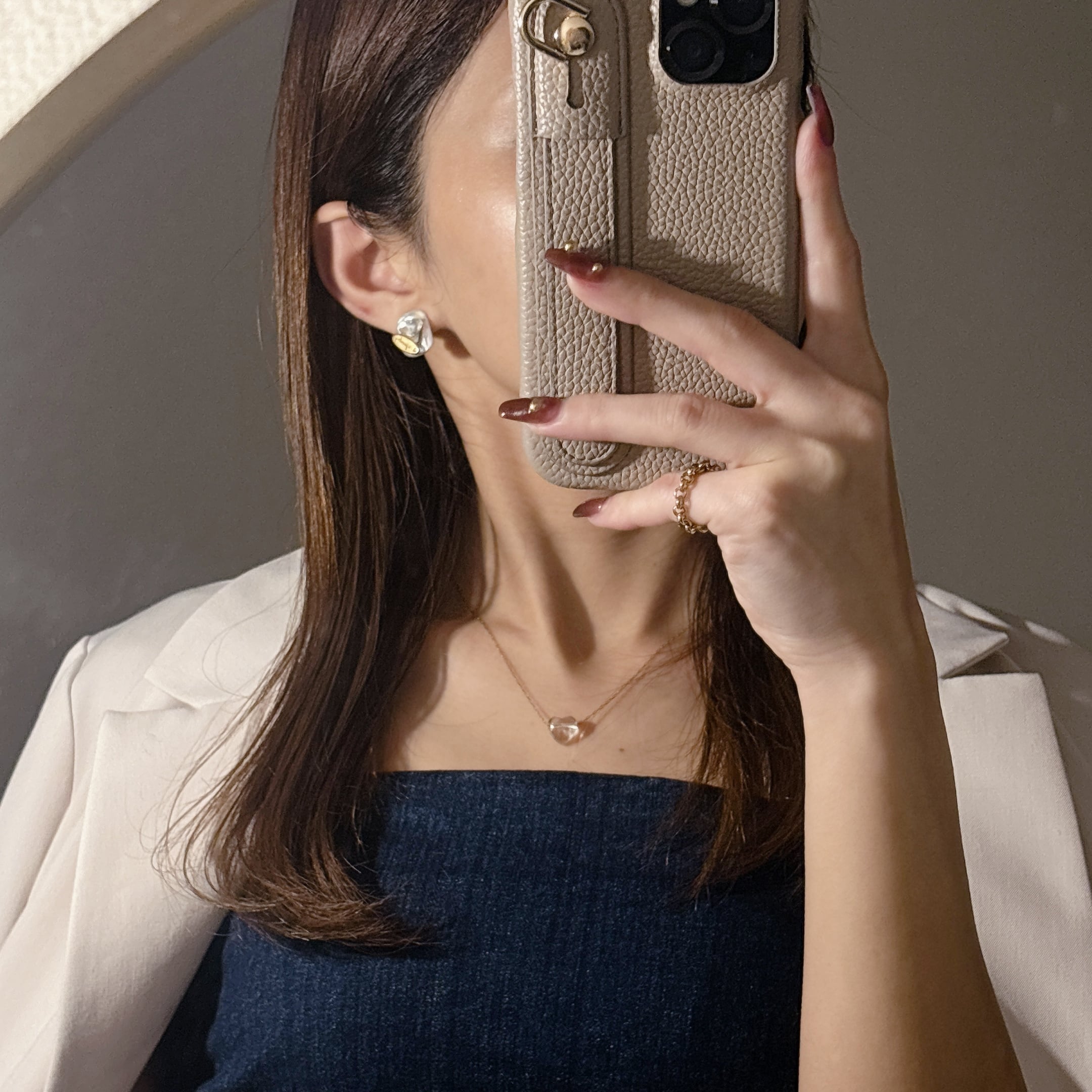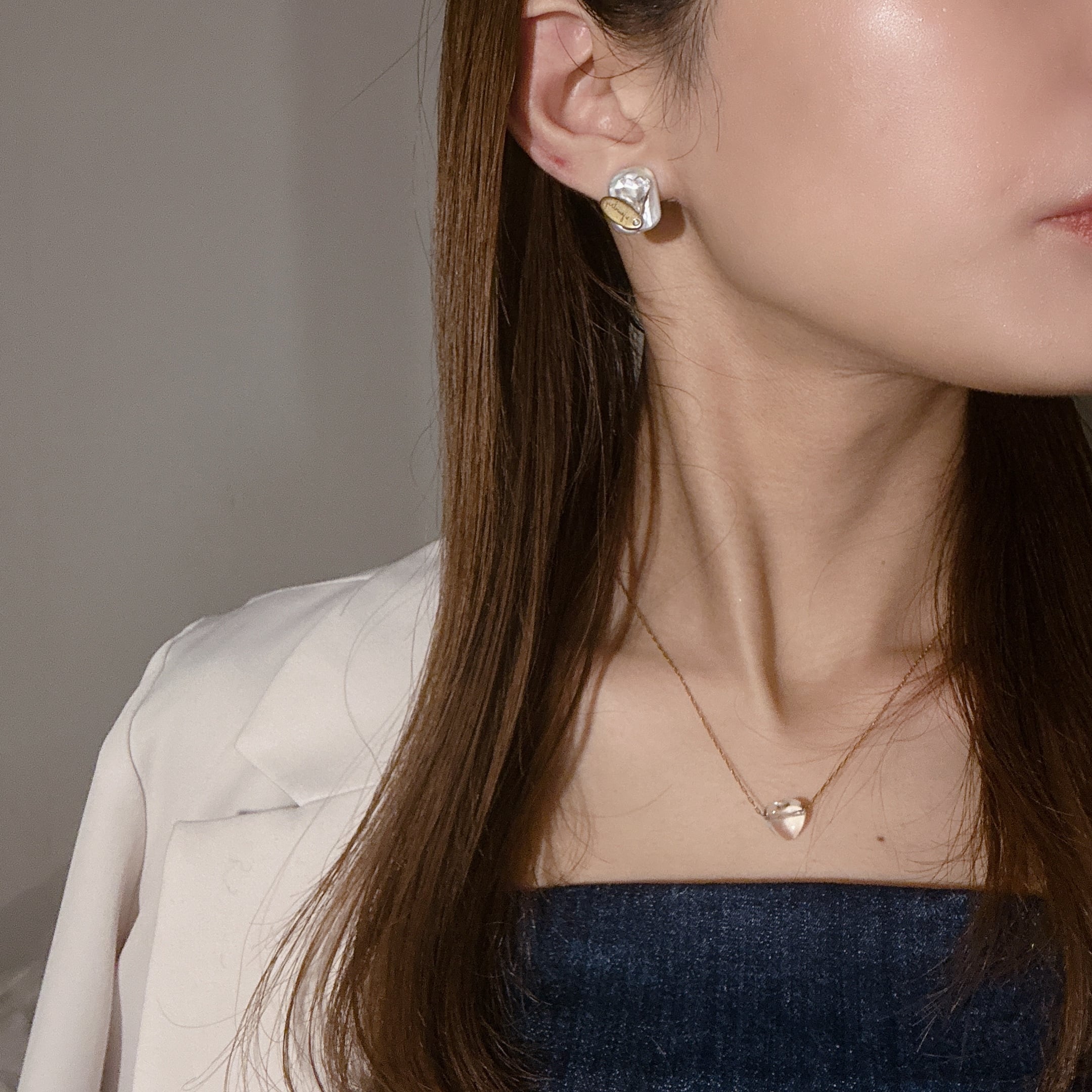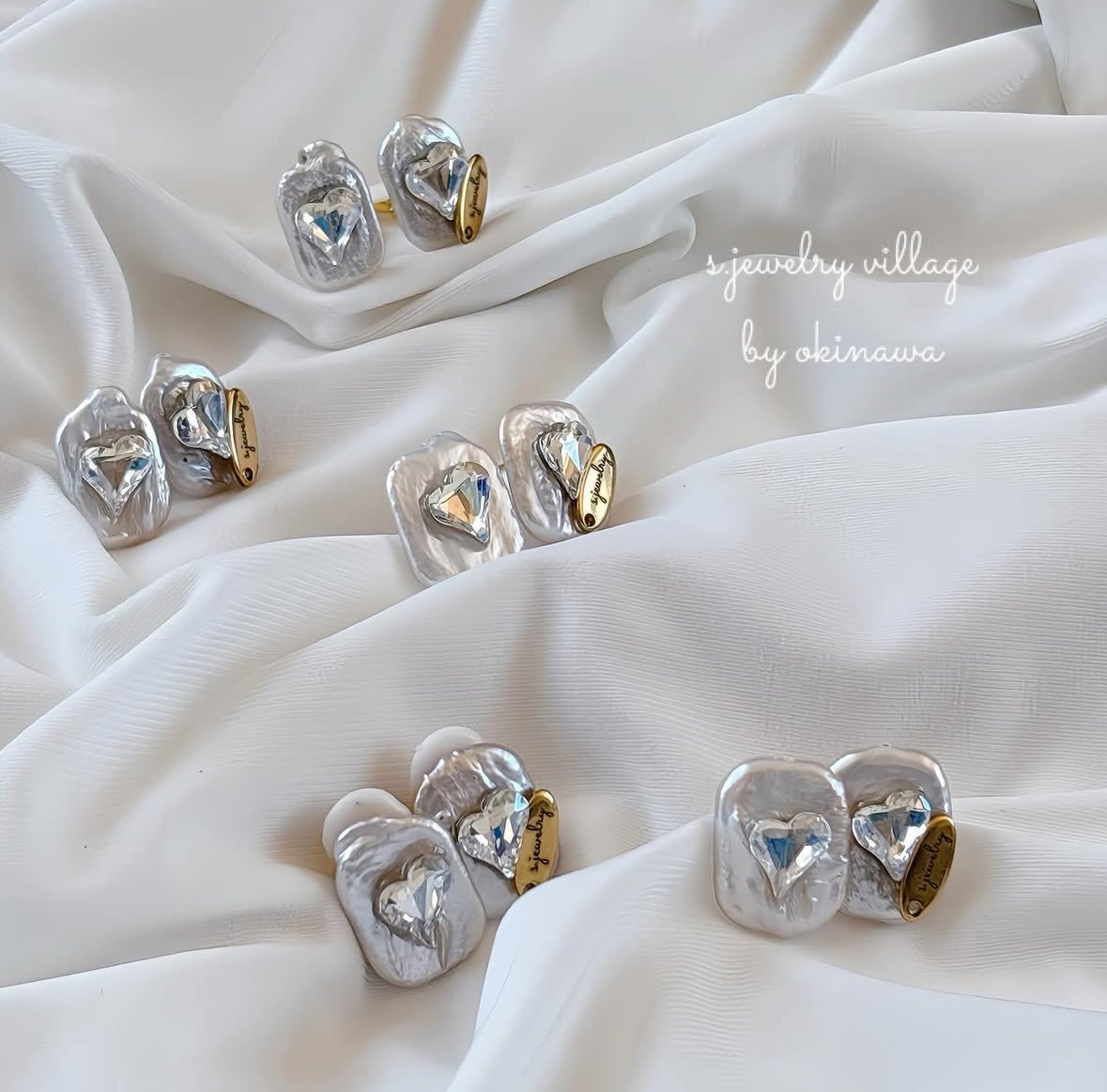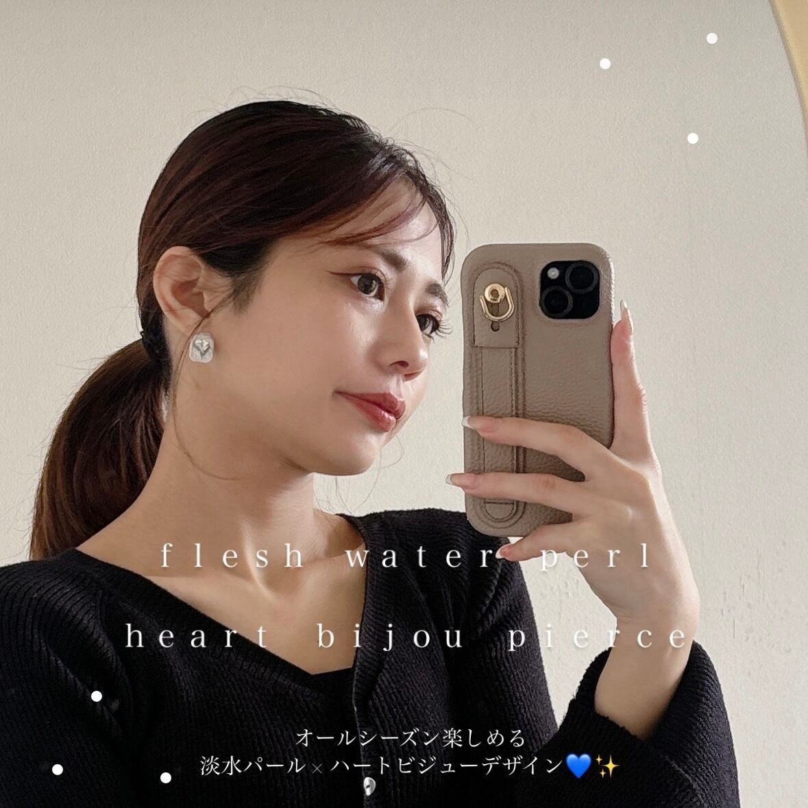 大人なハートが楽しめるハートビジュピアス♡淡水パールとの相性も抜群に良くアクセント使いにも♩♩シーズンレスでエイジレスに。淡水パールの一つ一つの特徴も自然な風合いを楽しめるポイントになっています。