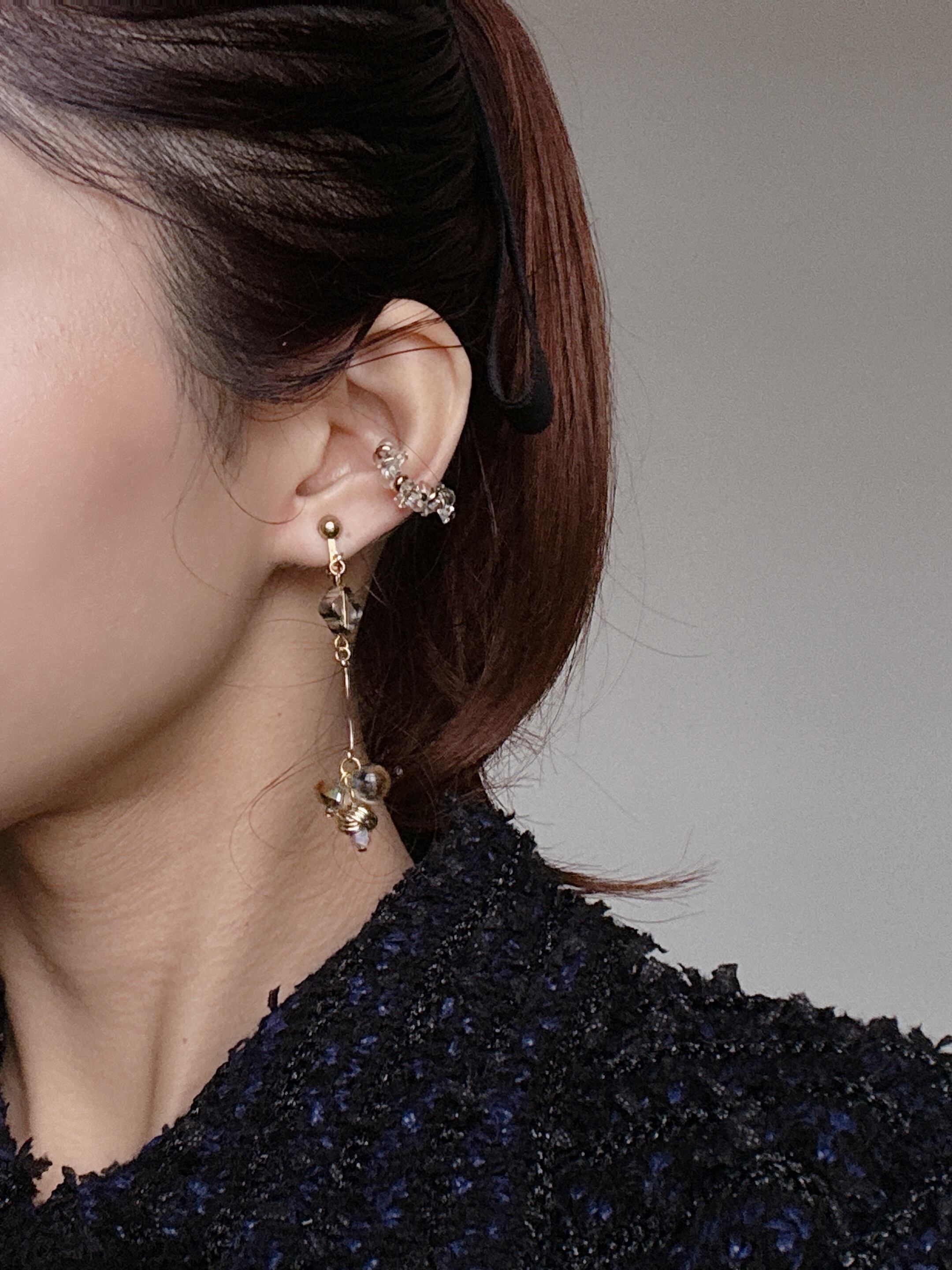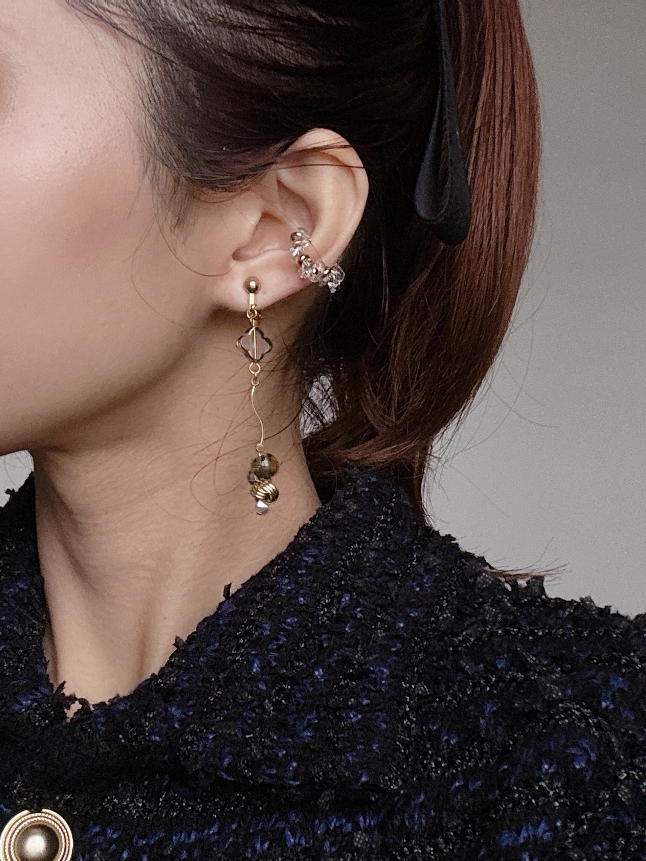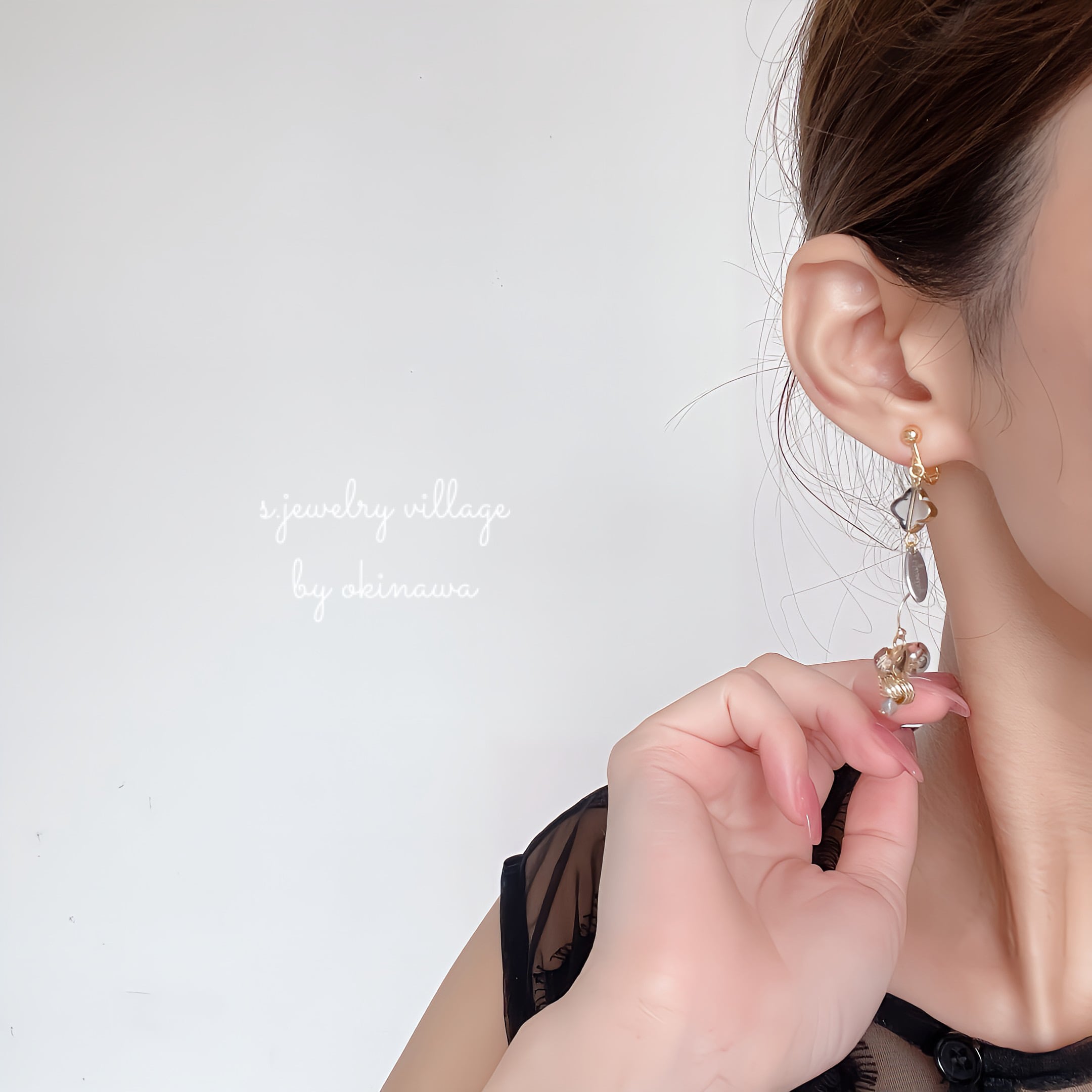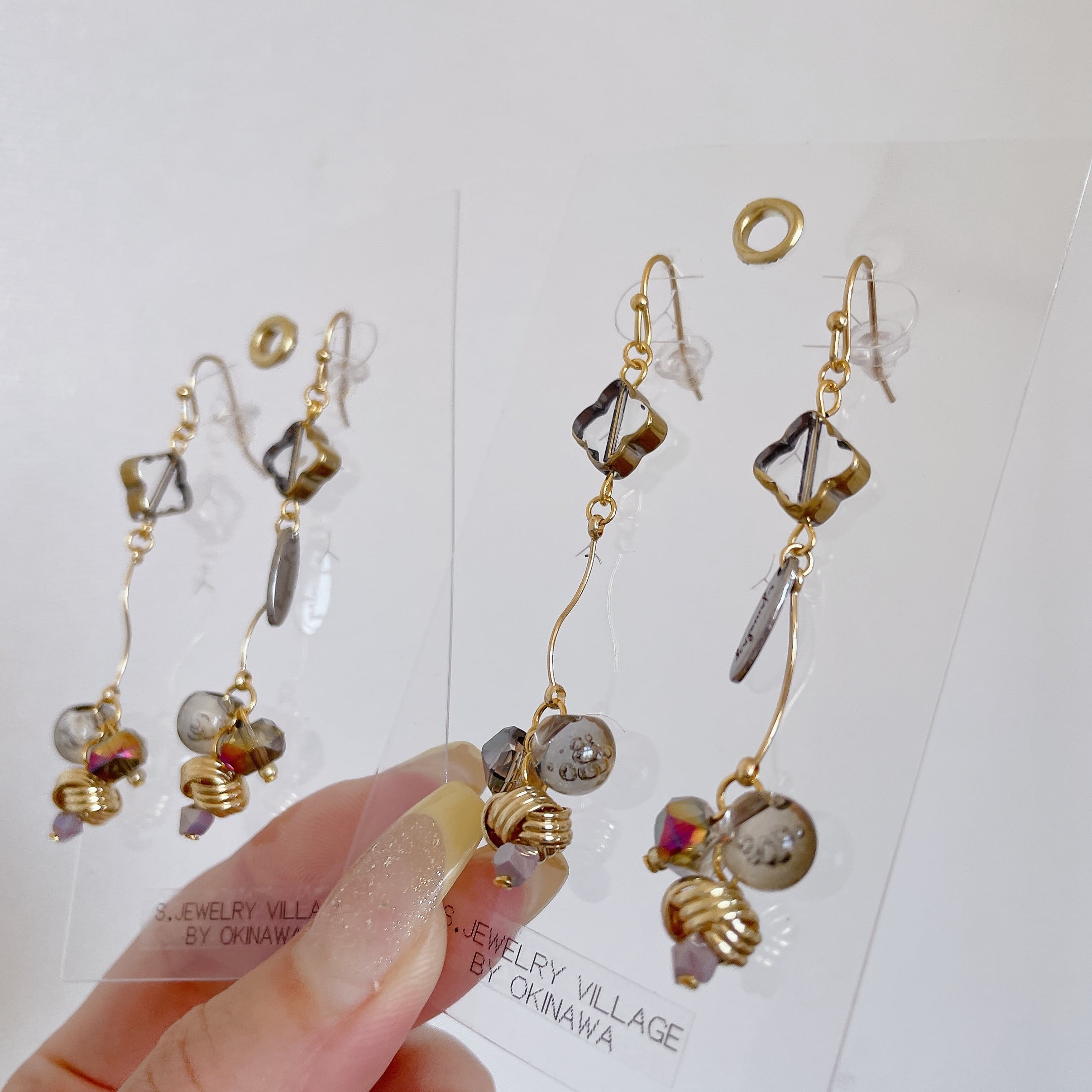 クローバービーズと目惹くグレー系のビーズがポイントのゆらりピアス♡ダークカラーのお洋服のアクセントに♡