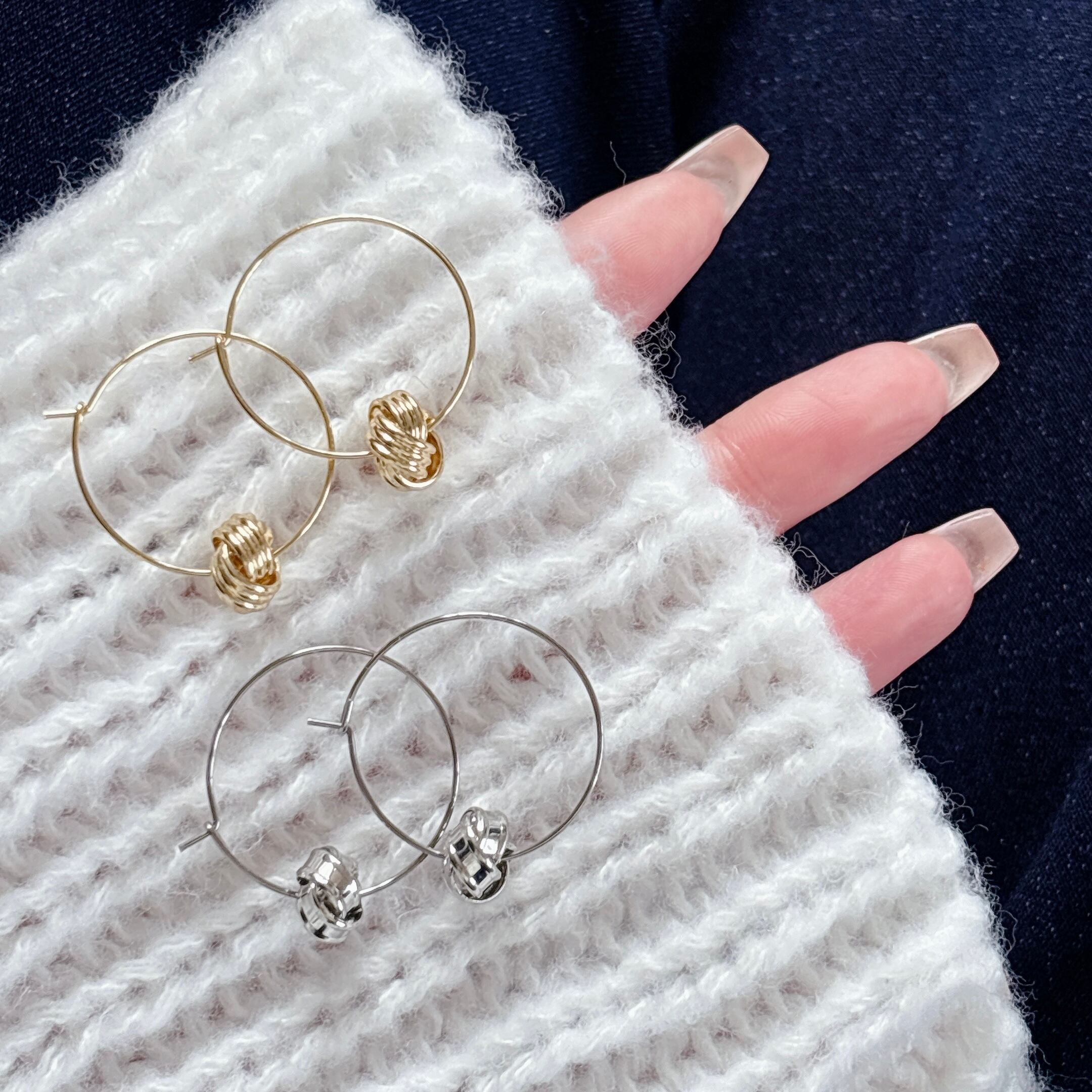 ノットフープピアス | 華奢×シンプルカジュアル【金属アレルギー対応】