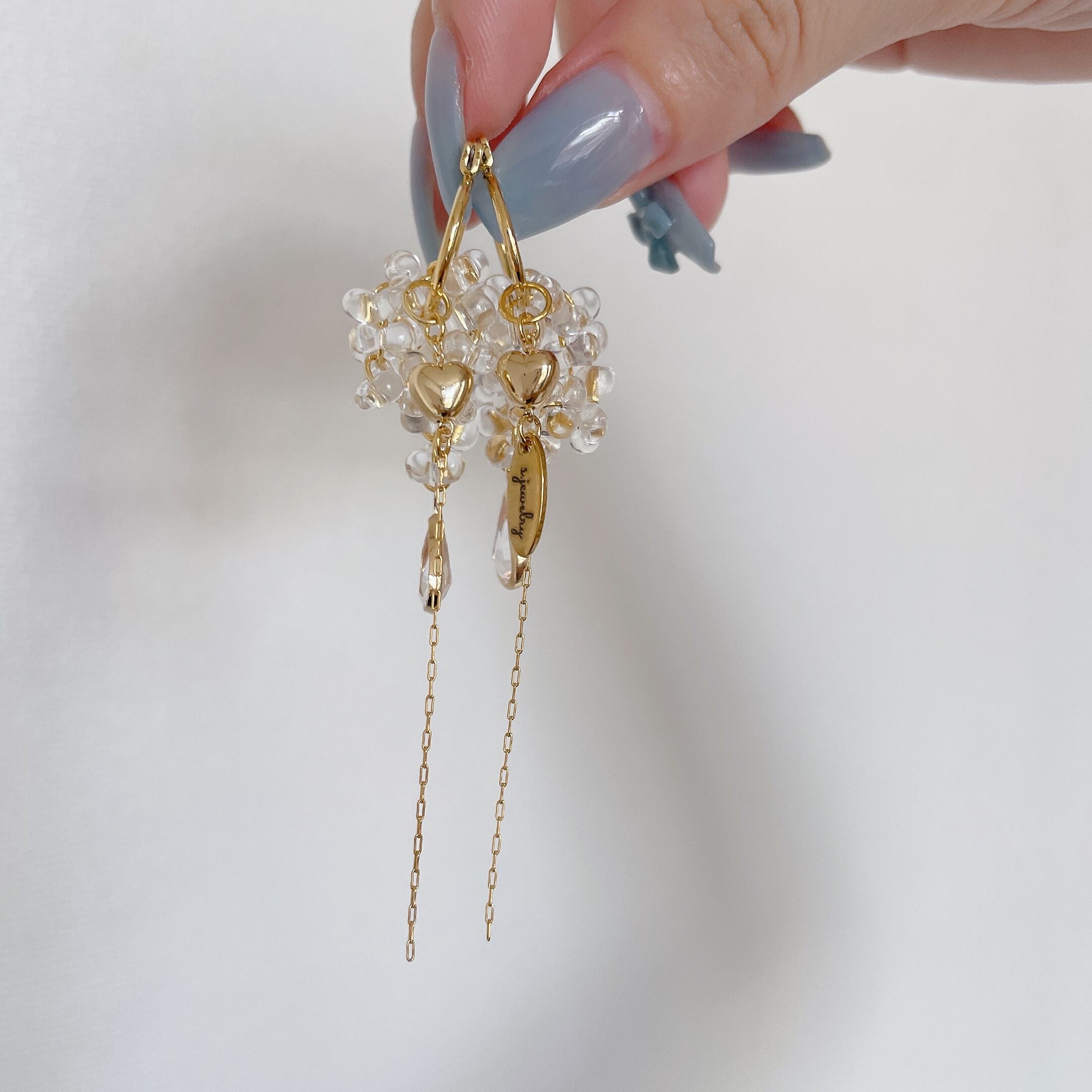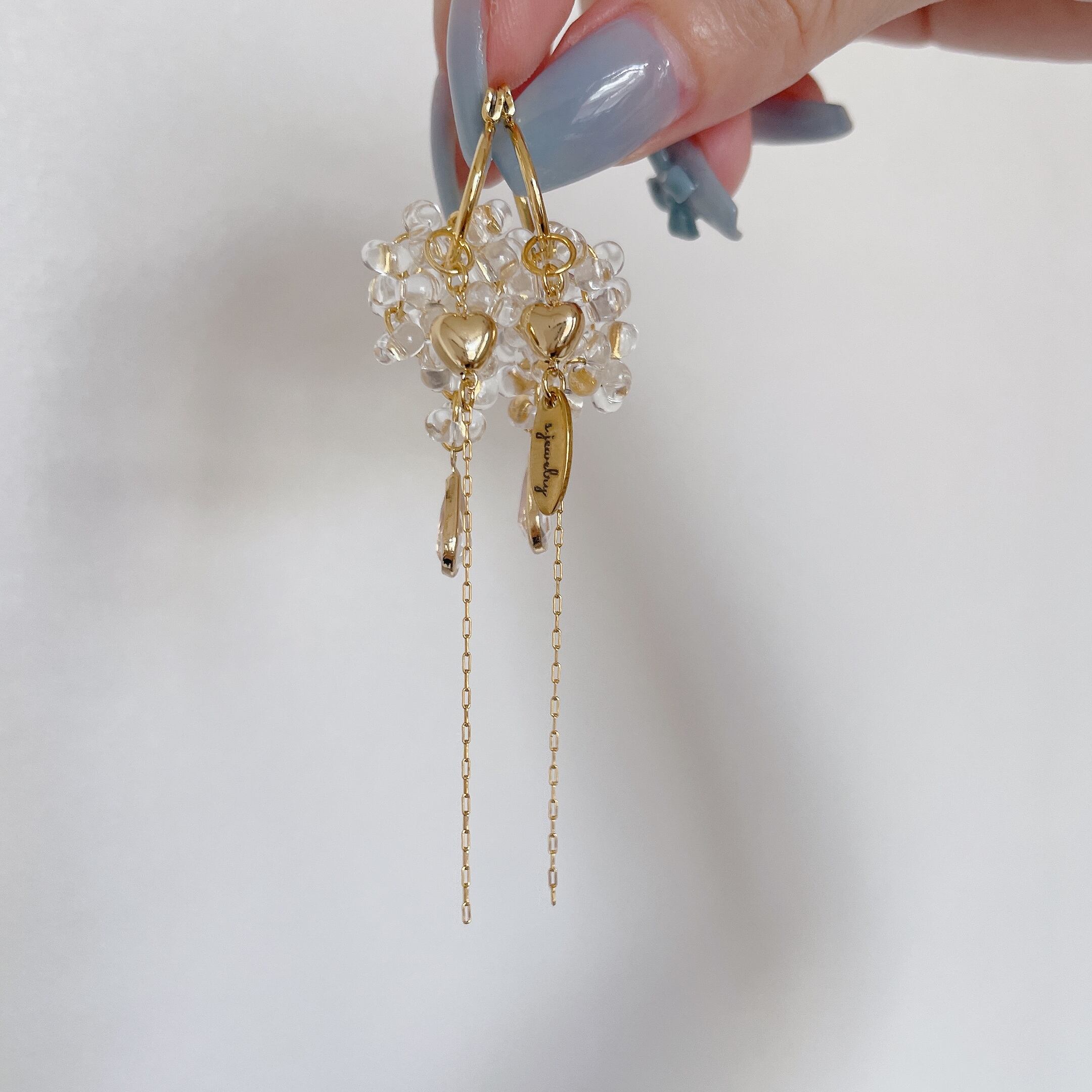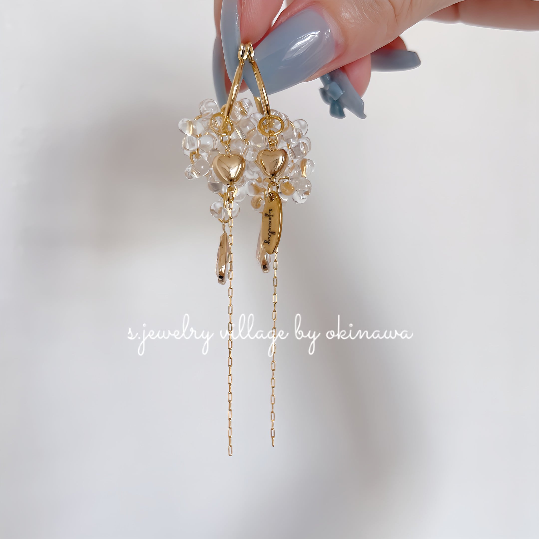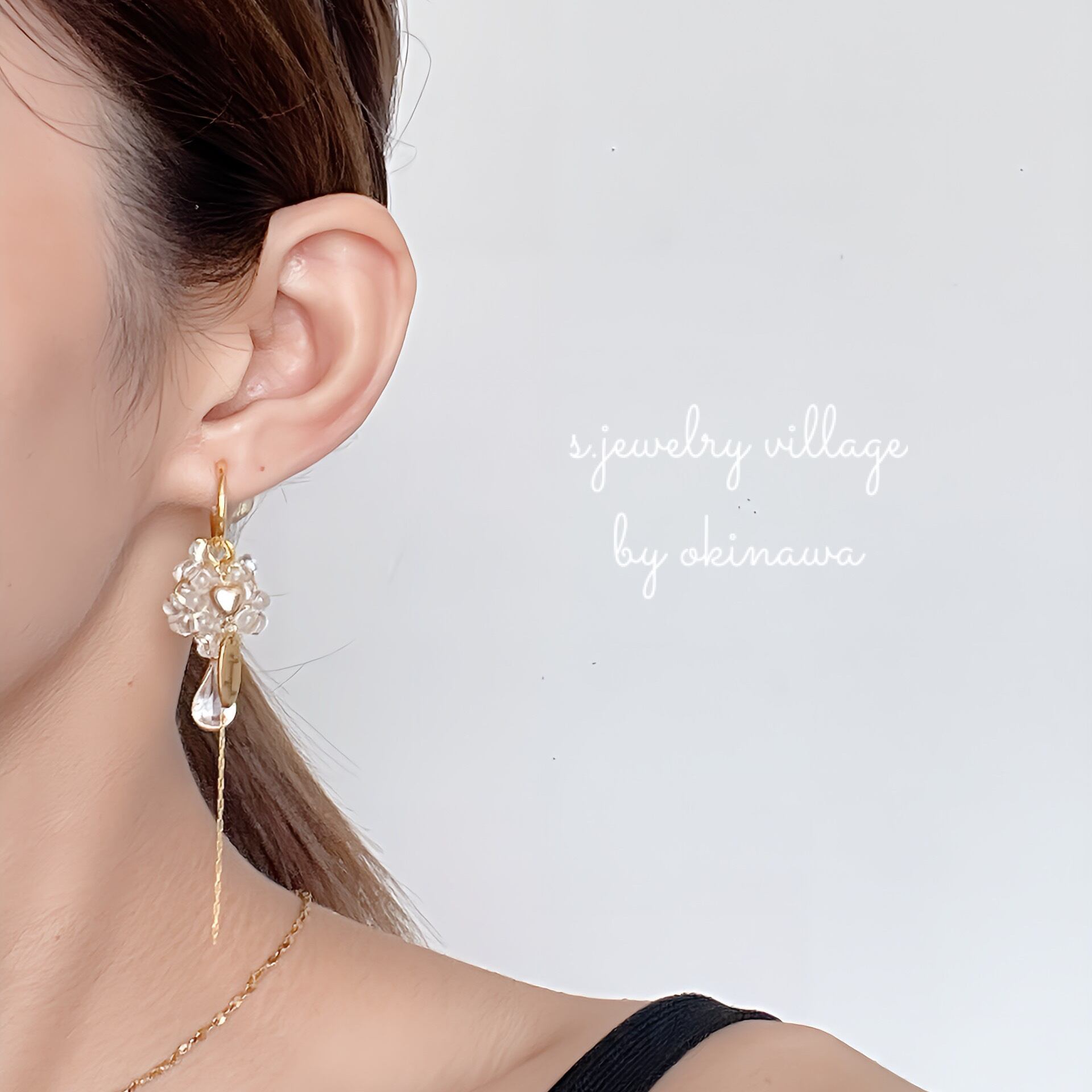 【ネット限定】ミニハートチャーム×クリアビーズピアス|2way×さりげない可愛さ【金属アレルギー対応】
