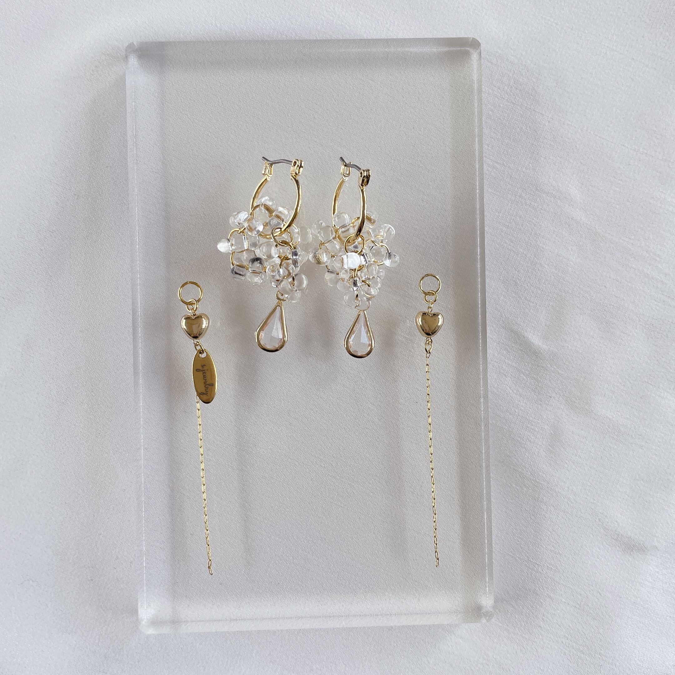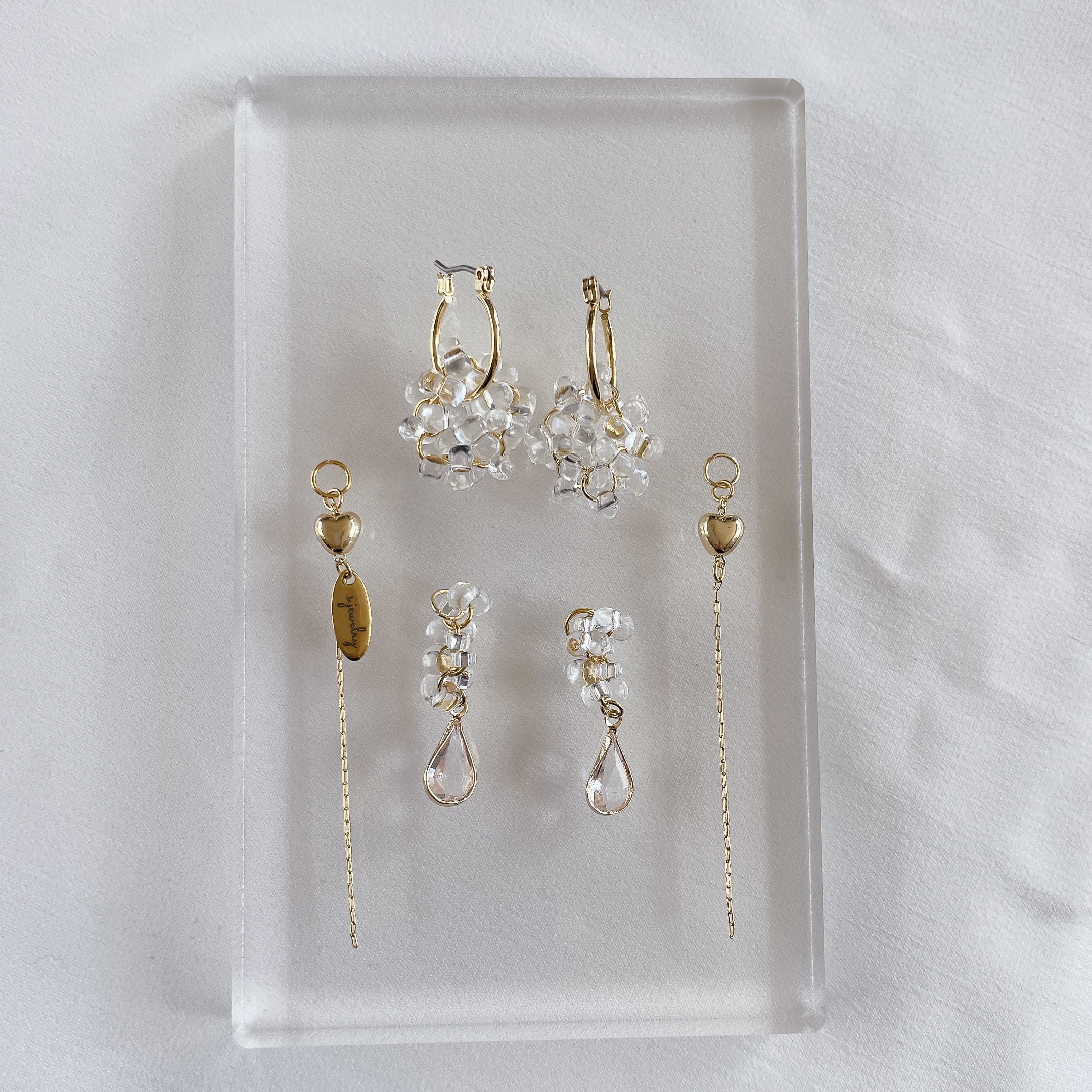 華やかアクセサリー / ワンピースコーデ / 結婚式 / お呼ばれアクセサリー / 綺麗め / occasion / 4way / 小ぶりから大振りまで / 可愛さ控えめ / 透明感 / 揺れデザイン