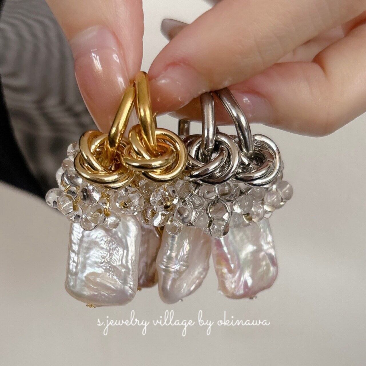 ✴︎淡水パール×クリアビーズ×フープピアス gold