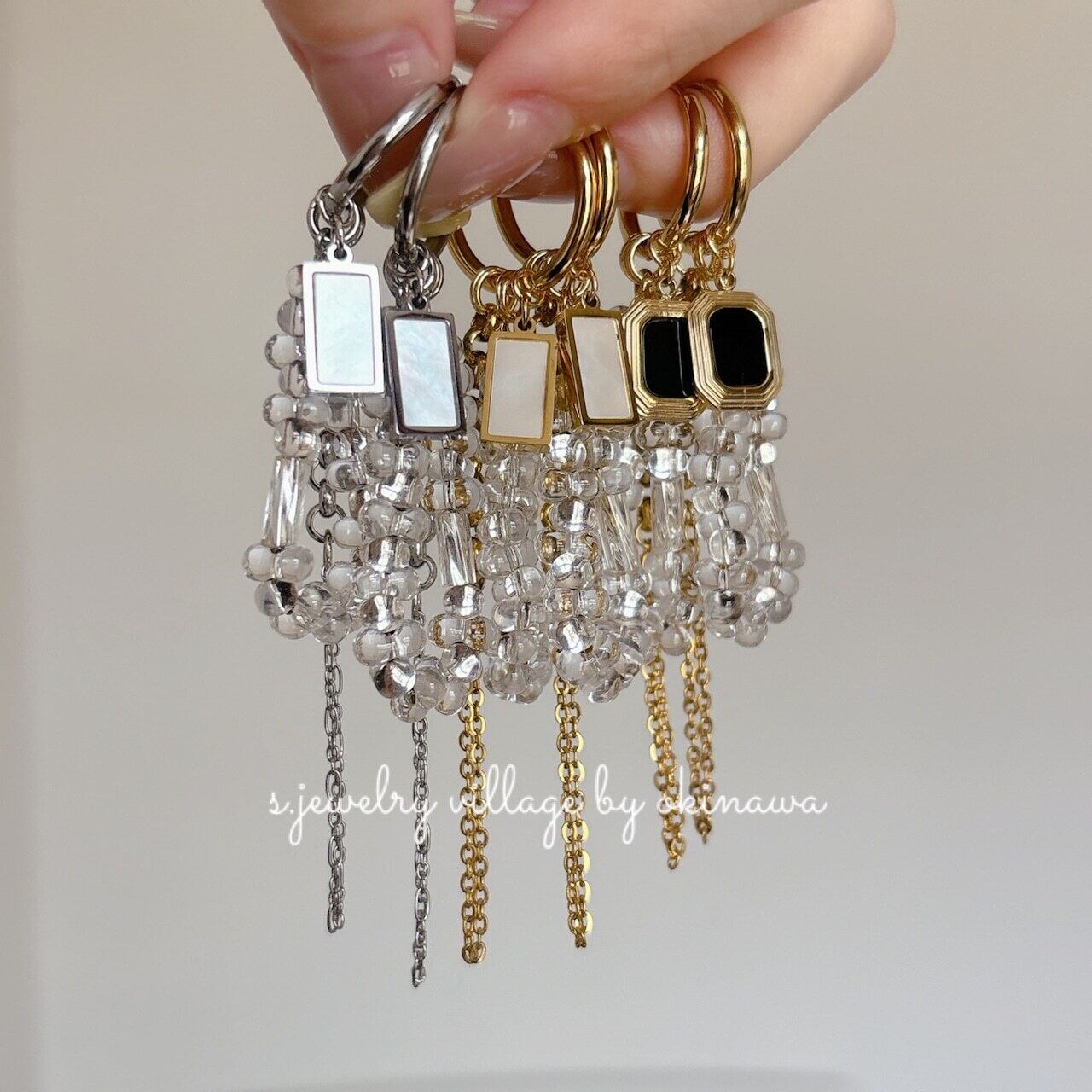 ✴︎プレート×クリアビーズピアス gold ×black