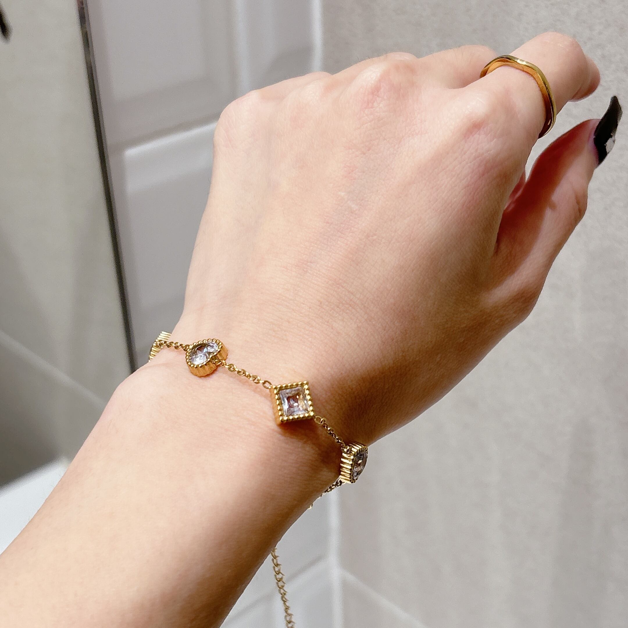 5粒ビジューブレスレット | 煌めき華やか × 綺麗めカジュアル【金属アレルギー対応】
