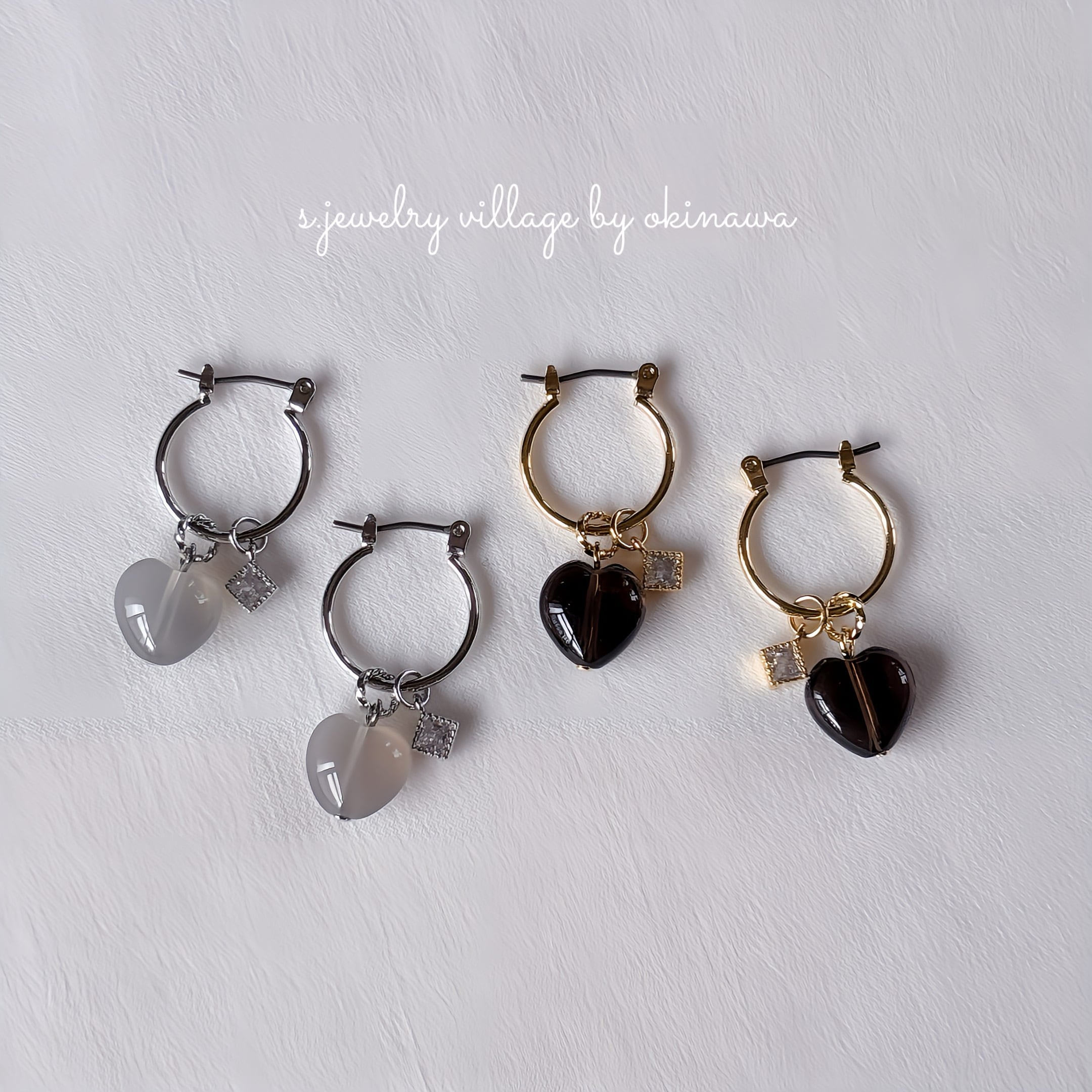 ハート天然石×フープピアス|大人可愛いマルチデザイン【金属アレルギー対応】