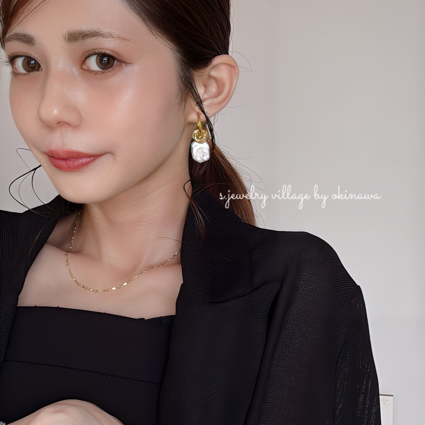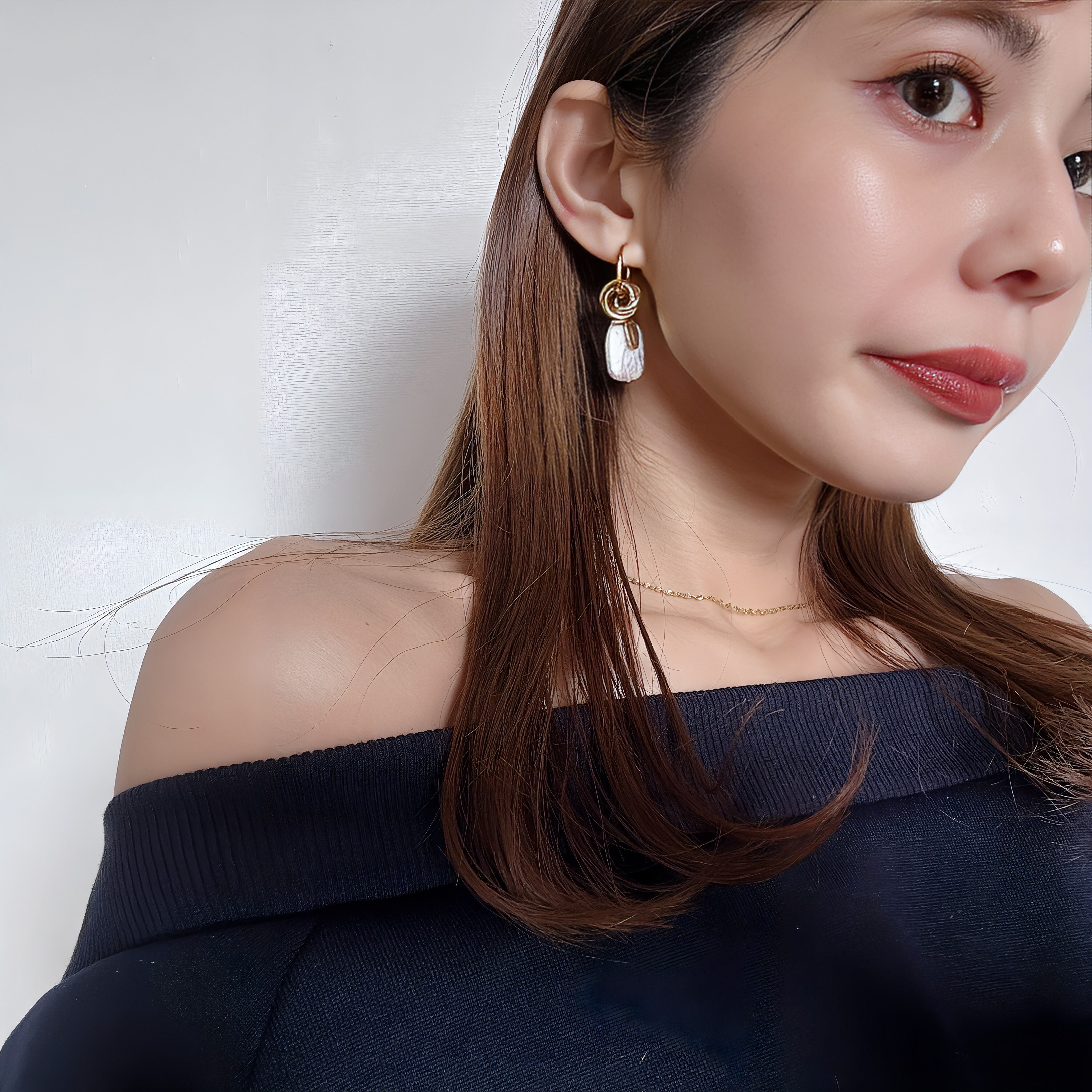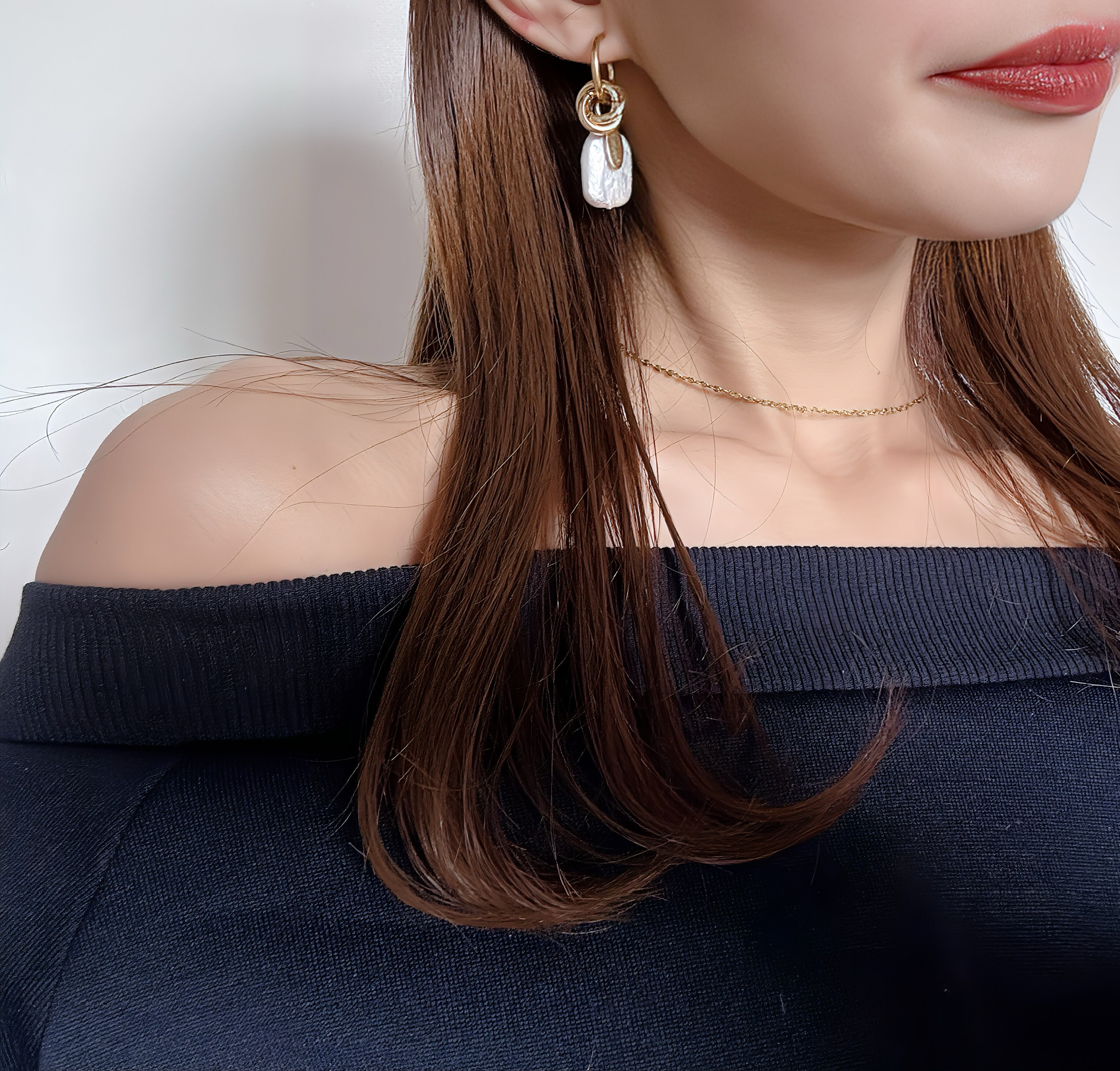 お馴染みのチャーム取り外し可能なマルチウェイピアス♡こちらは、太めの存在感もずっしりあるフープを使用したデザイン。光沢感や大きさフォルムなど個性のある淡水パールもお楽しみいただけはポイントになります♪