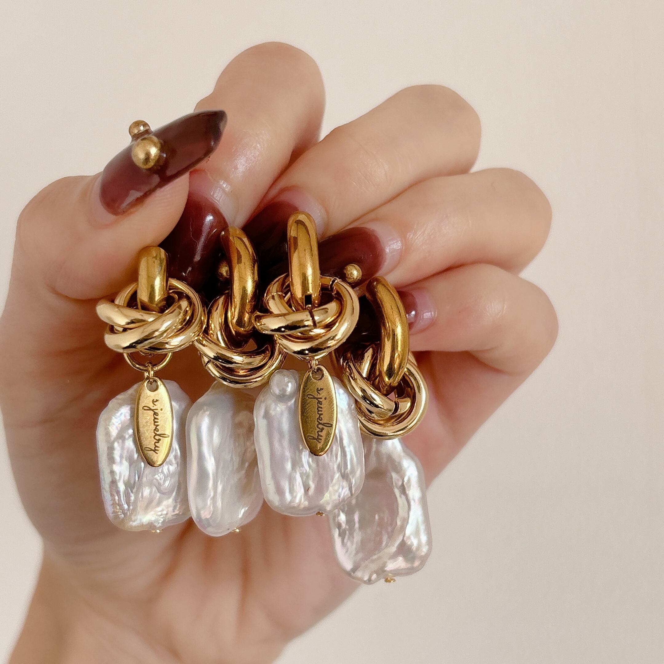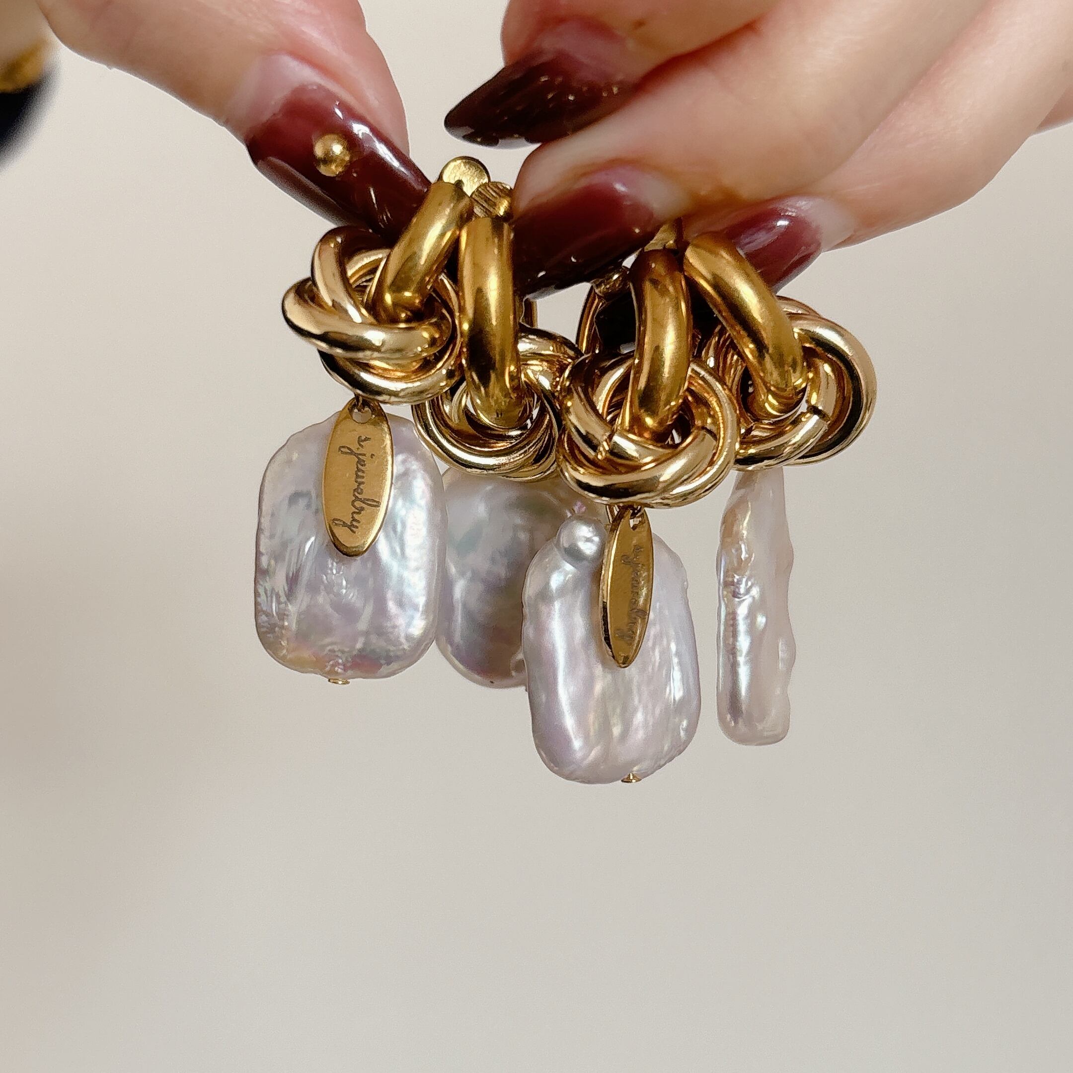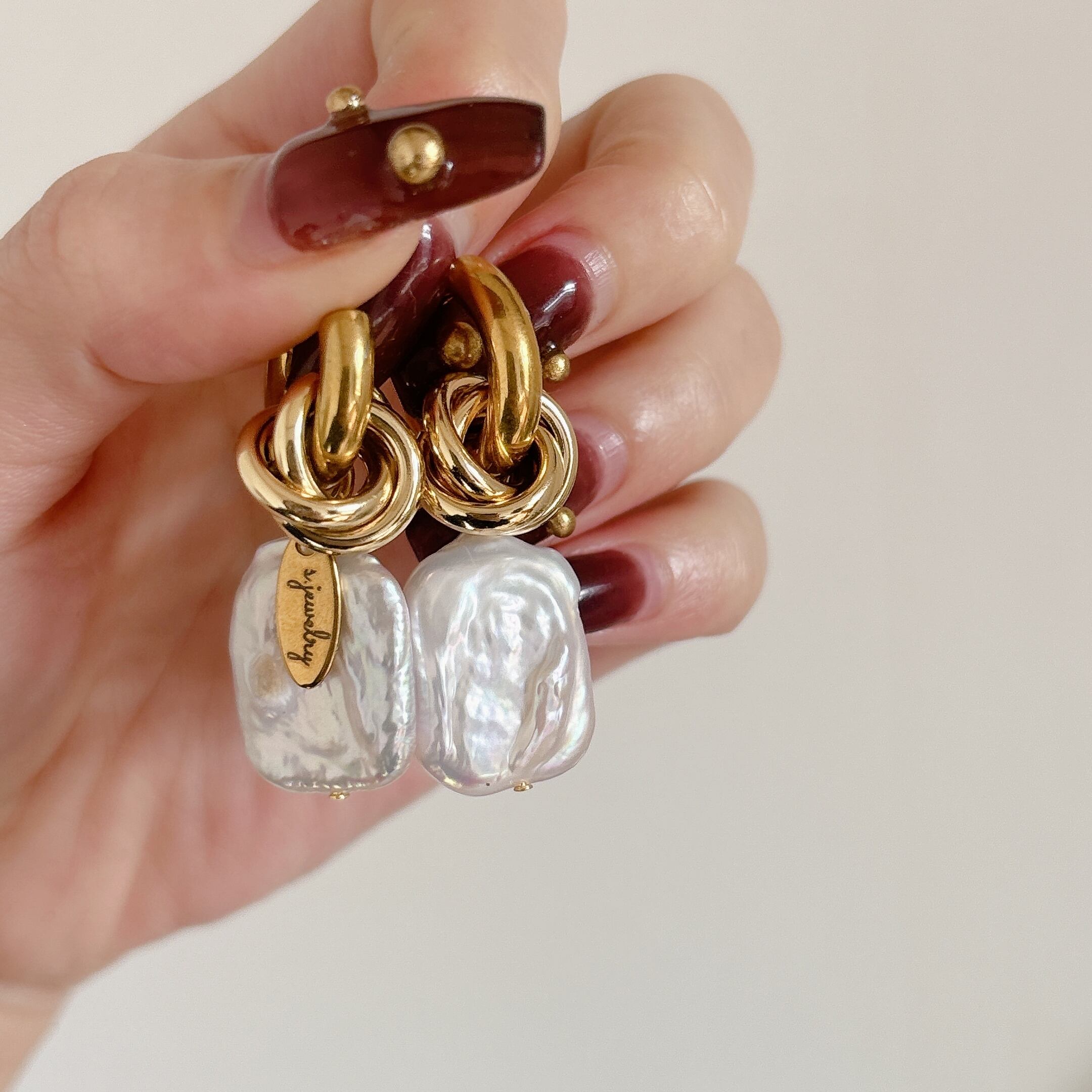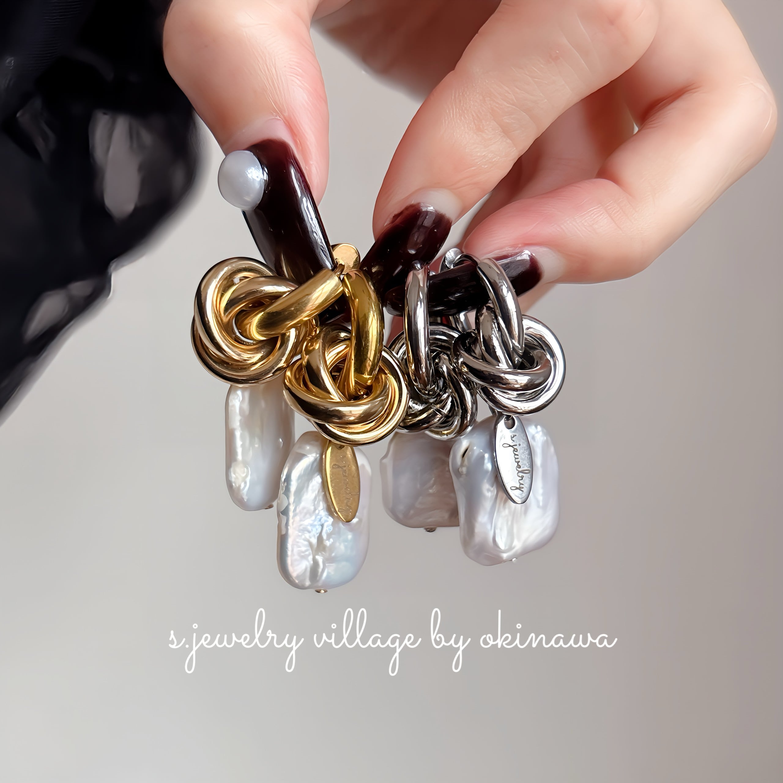 お馴染みのチャーム取り外し可能なマルチウェイピアス♡こちらは、太めの存在感もずっしりあるフープを使用したデザイン。光沢感や大きさフォルムなど個性のある淡水パールもお楽しみいただけはポイントになります♪