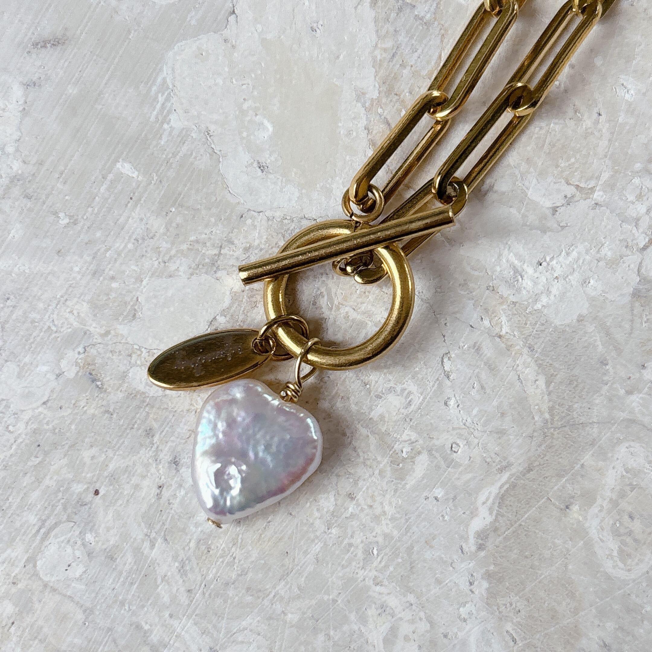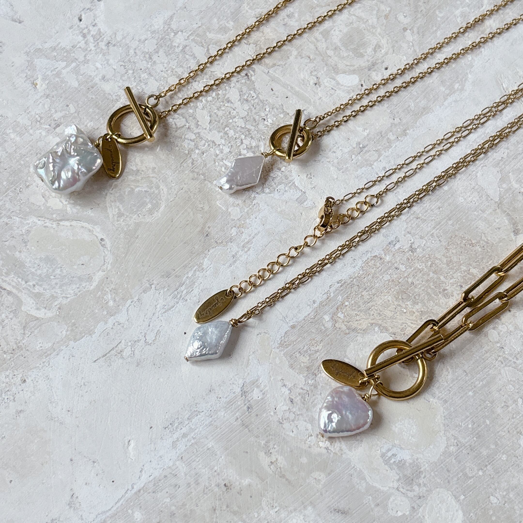 ハート淡水パールワイドチェーンマンテルネックレス | 存在感大×天然の魅力【金属アレルギー対応】