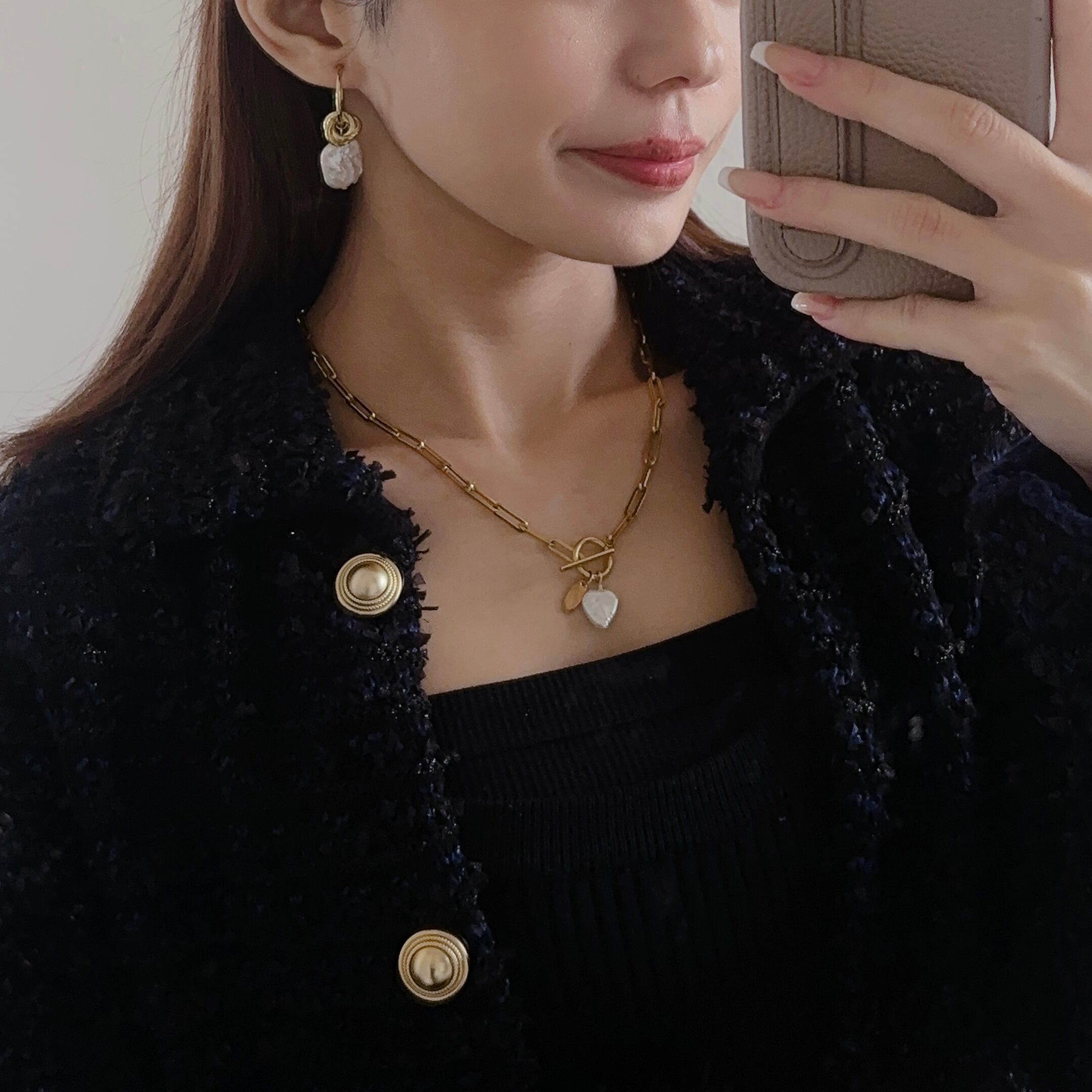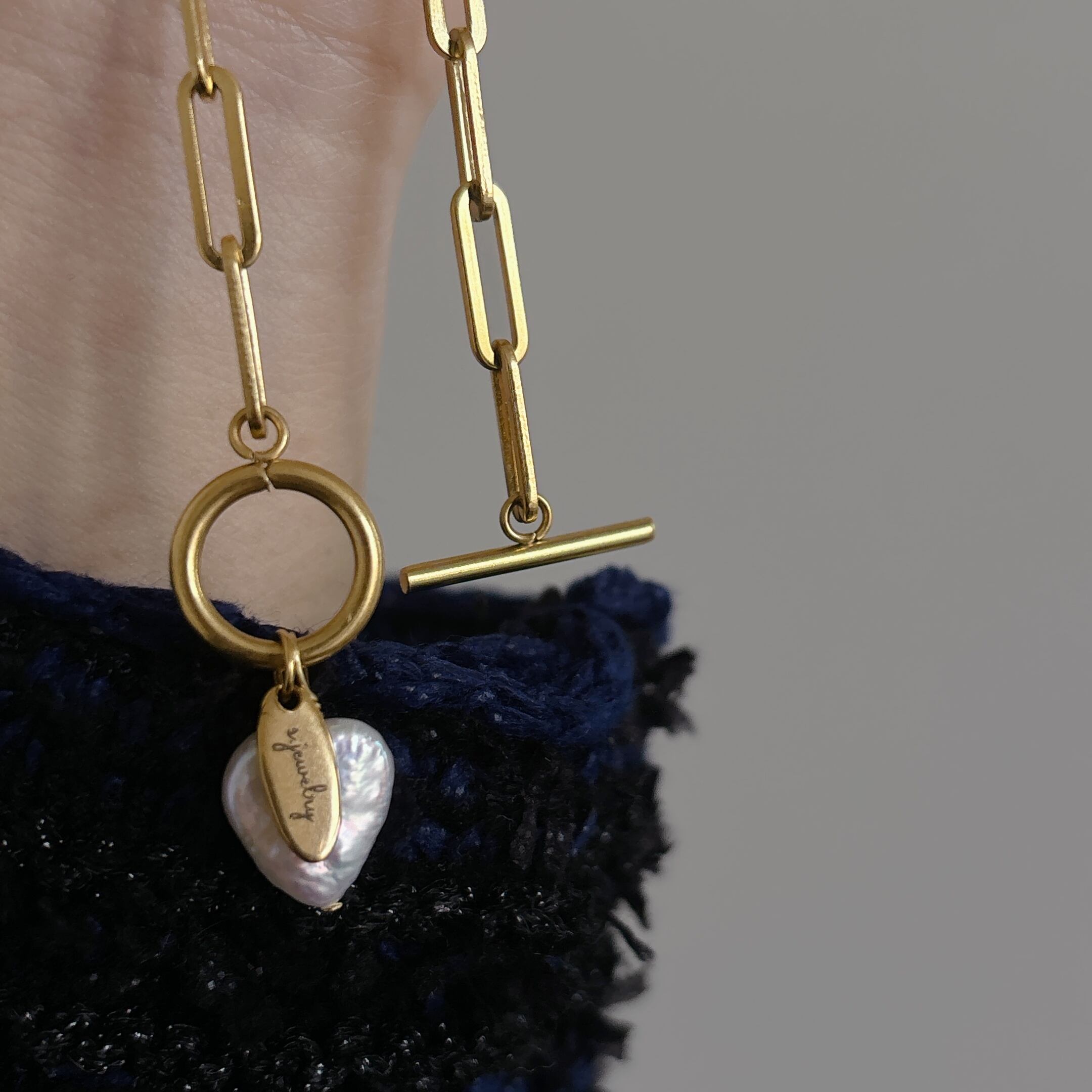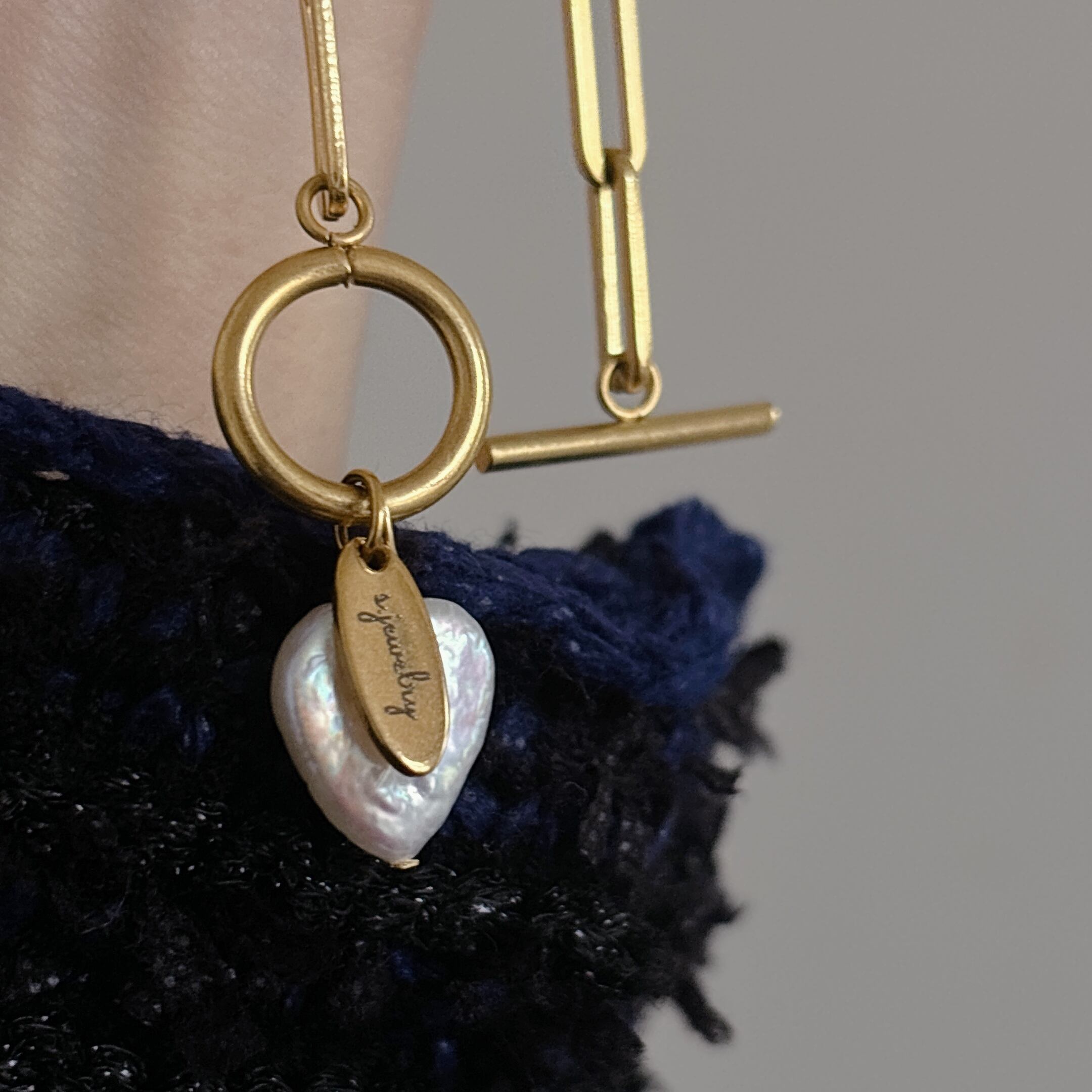 存在感のあるワイドチェーン×大振りな淡水パールのインパクトあるデザインです。シーズンレスに、首元が嵩張るお洋服にも、すっきり首元が空いているお洋服どちらにも合わせやすい大人カジュアルデザイン。